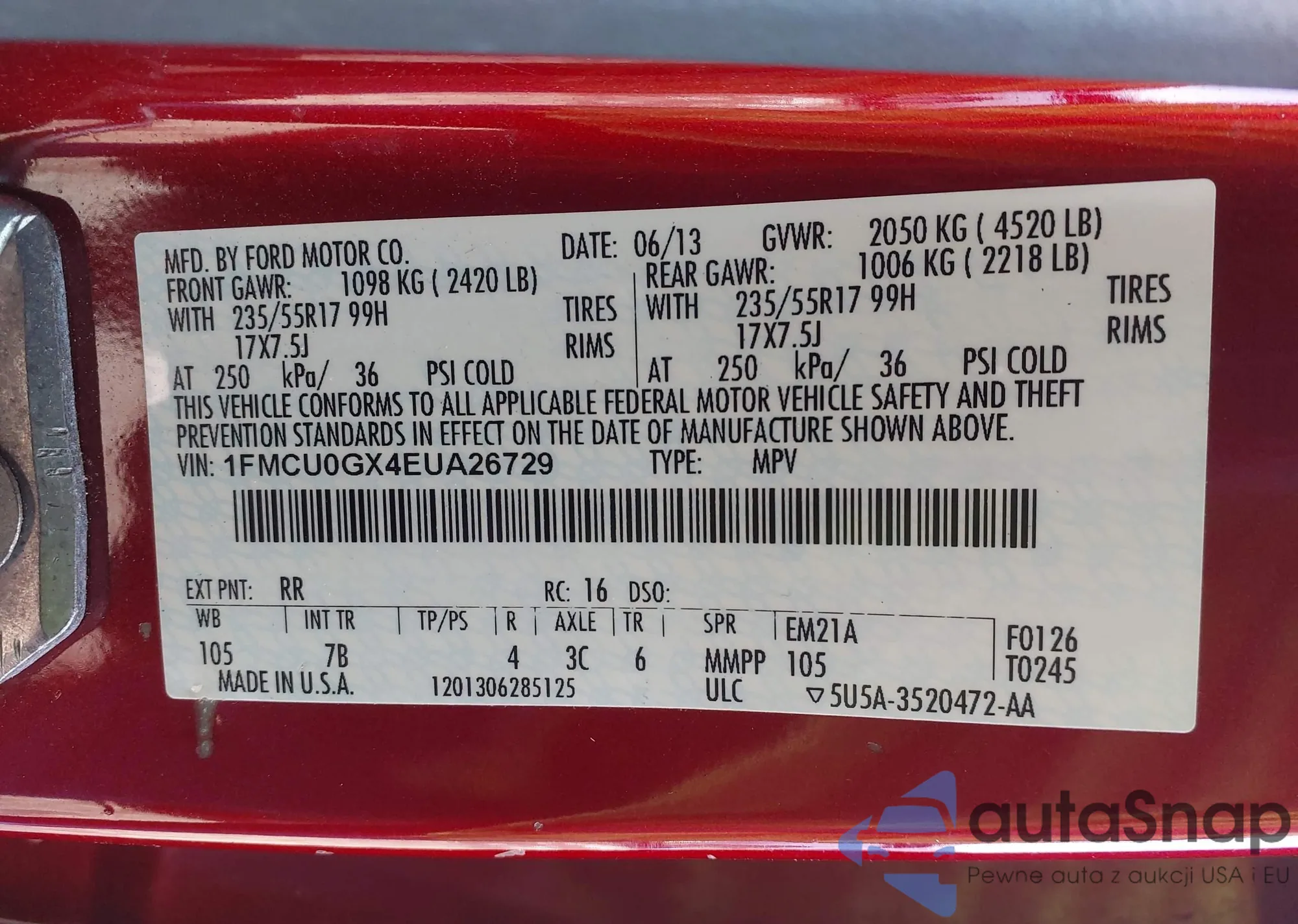 LOT: 43919757 VIN: JF2GPACC5DG207116