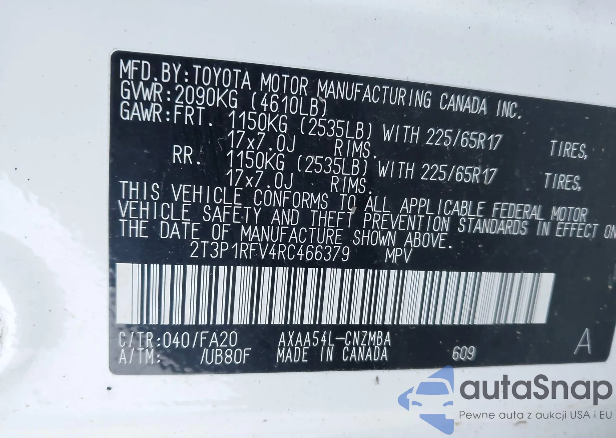 LOT: 43809433 VIN: 2T3P1RFV4RC466379