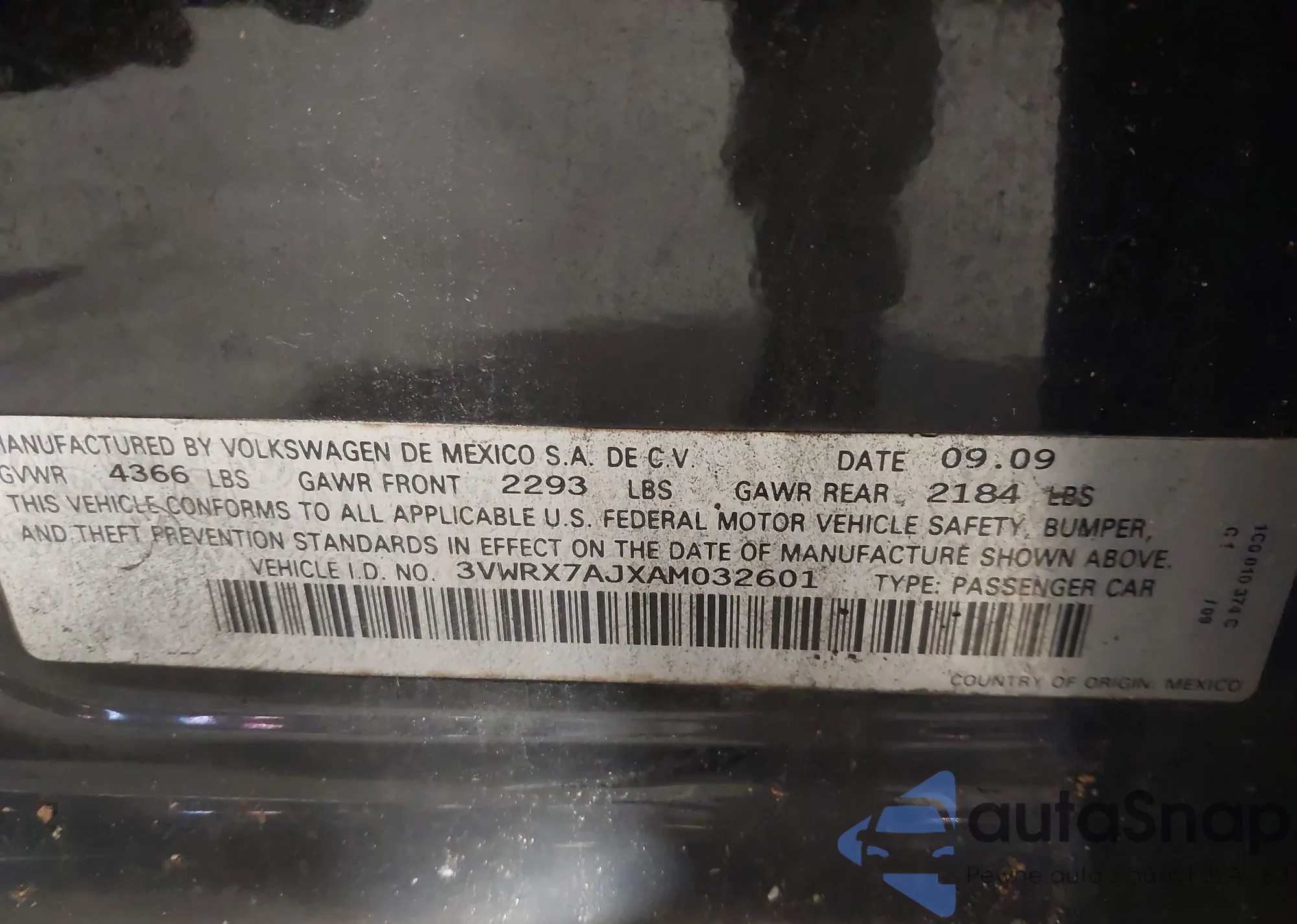 • VIN 3VWRX7AJXAM032601
