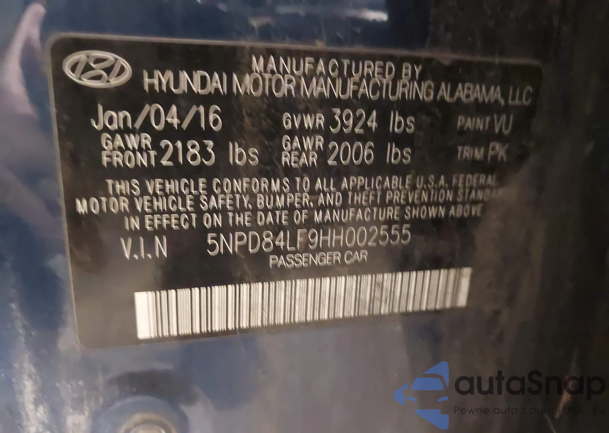 • VIN 5NPD84LF9HH002555
