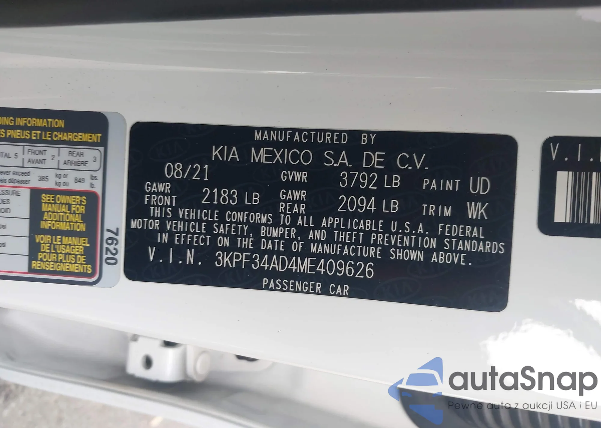 • VIN 3KPF34AD4ME409626