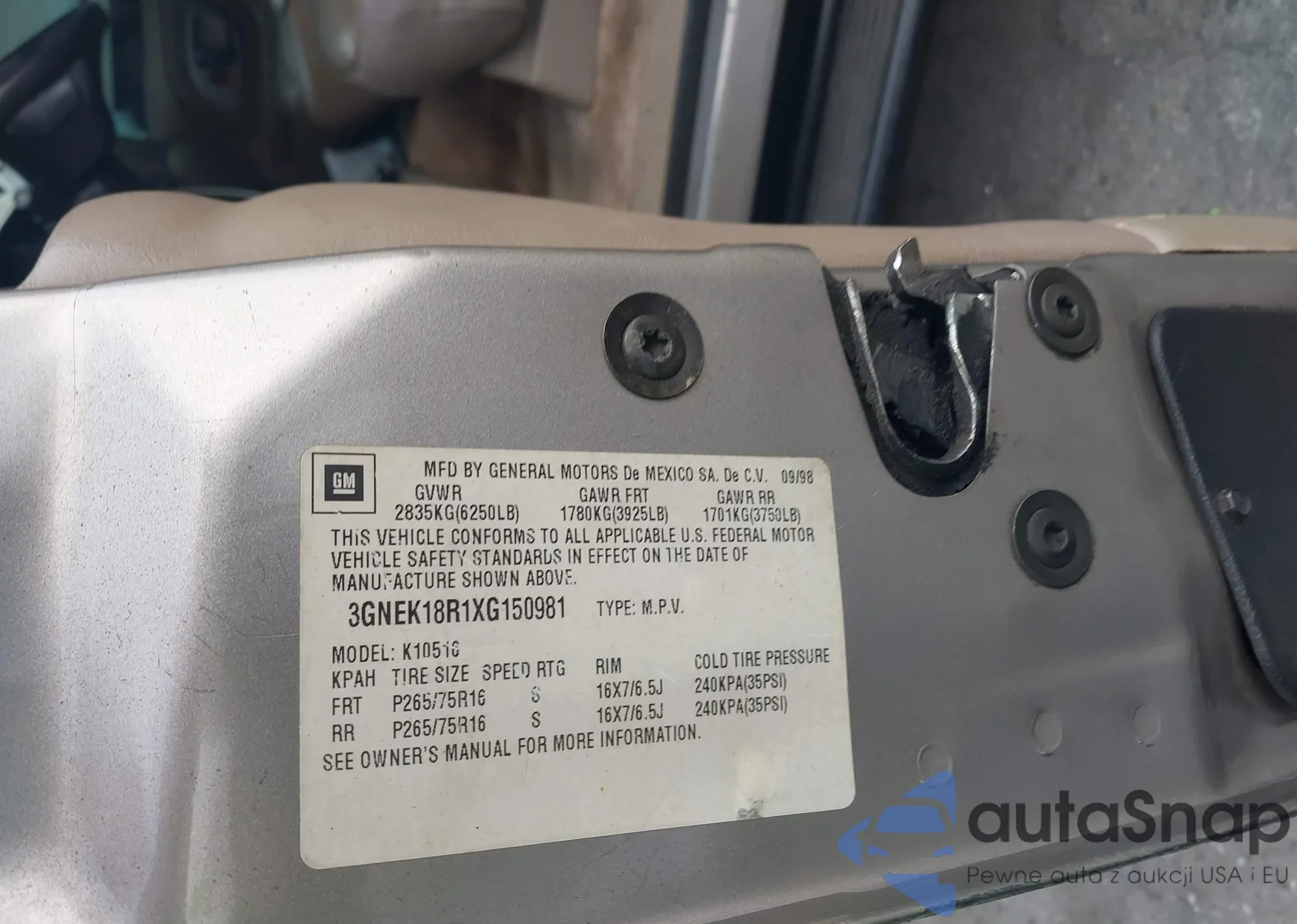 • VIN 3GNEK18R1XG150981