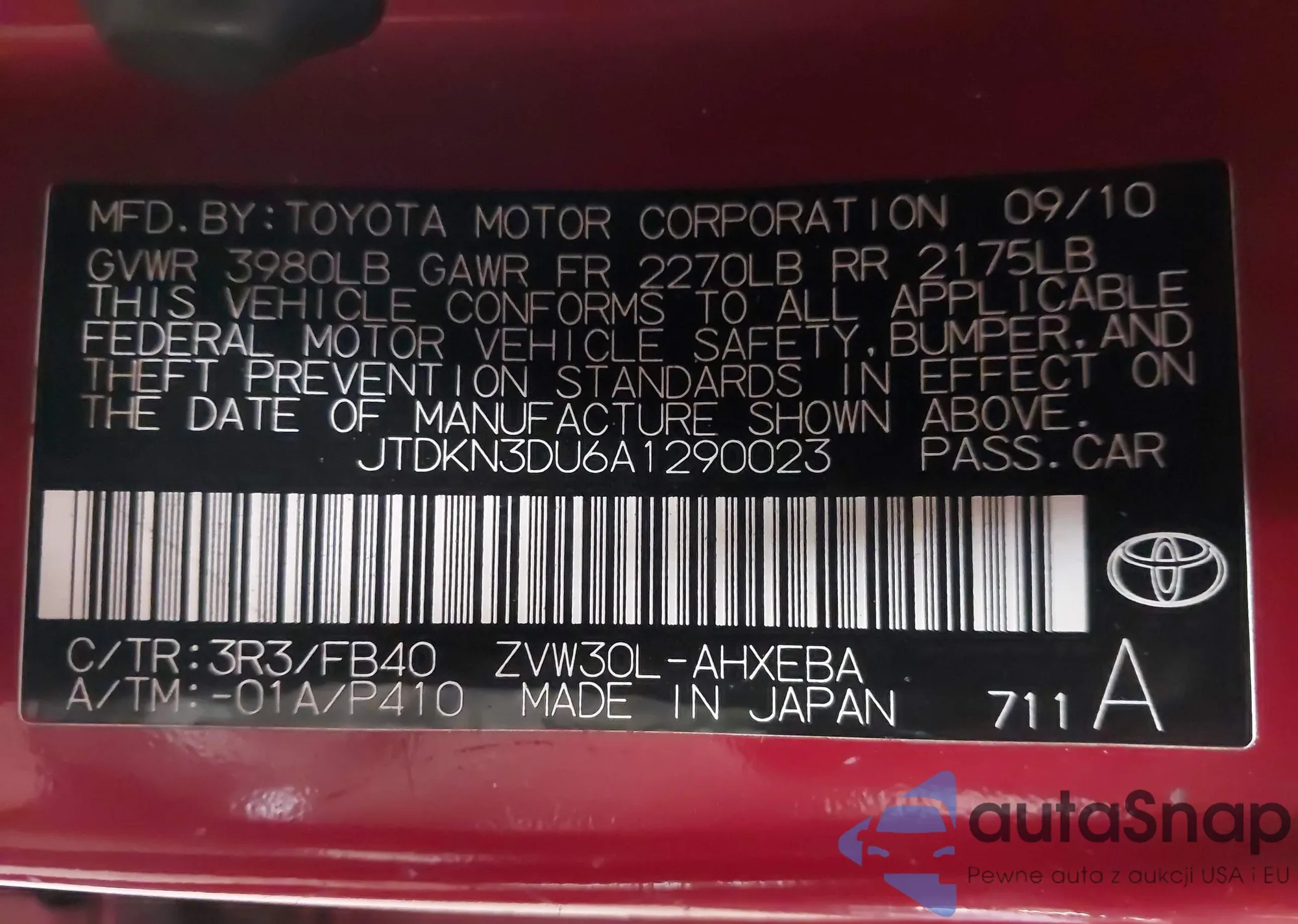 • VIN JTDKN3DU6A1290023