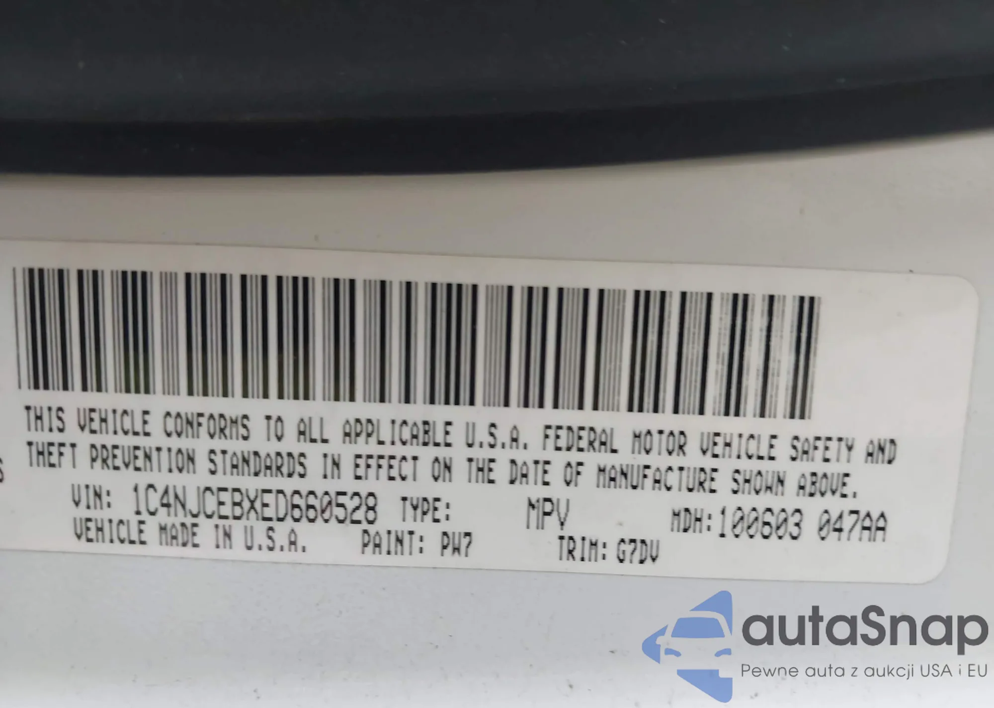 LOT: 43313798 VIN: 1C4NJCEBXED660528