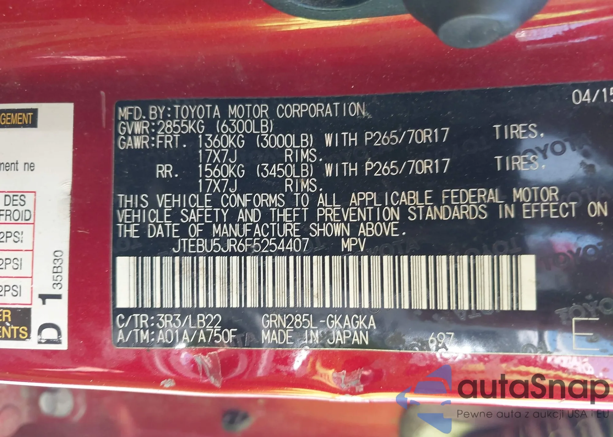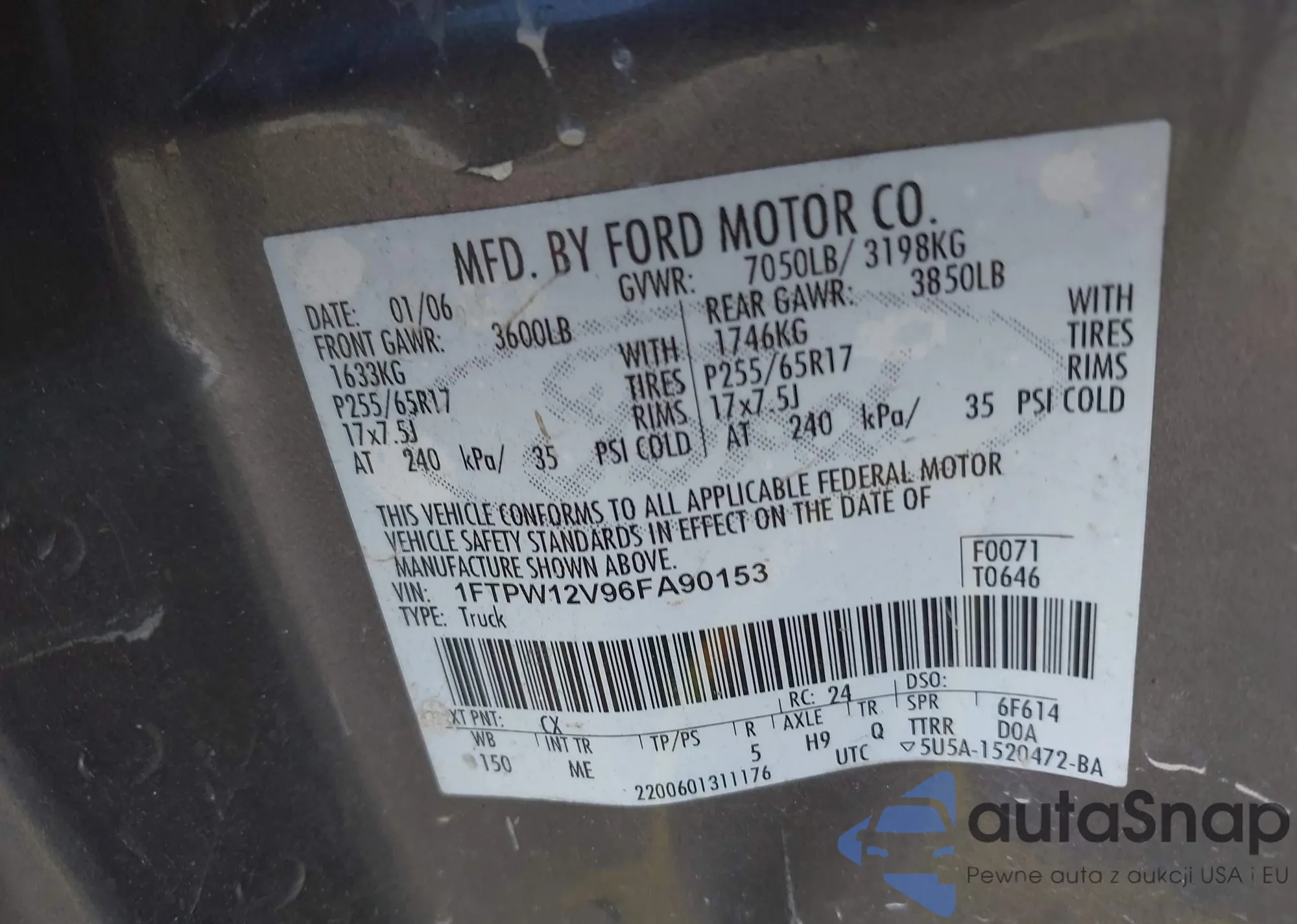 LOT: 42702312 VIN: 1FTPW12V96FA90153