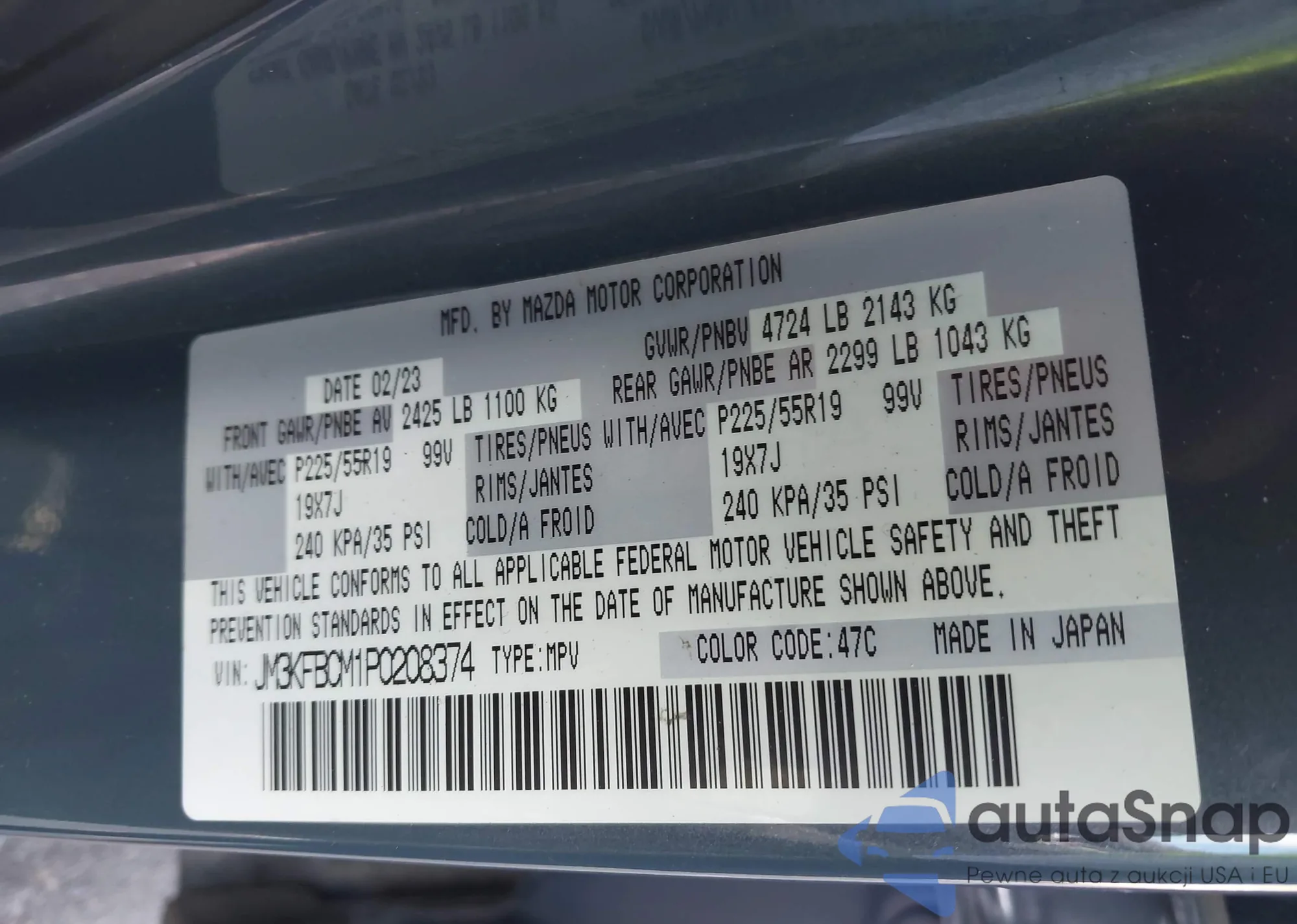 • VIN JM3KFBCM1P0208374