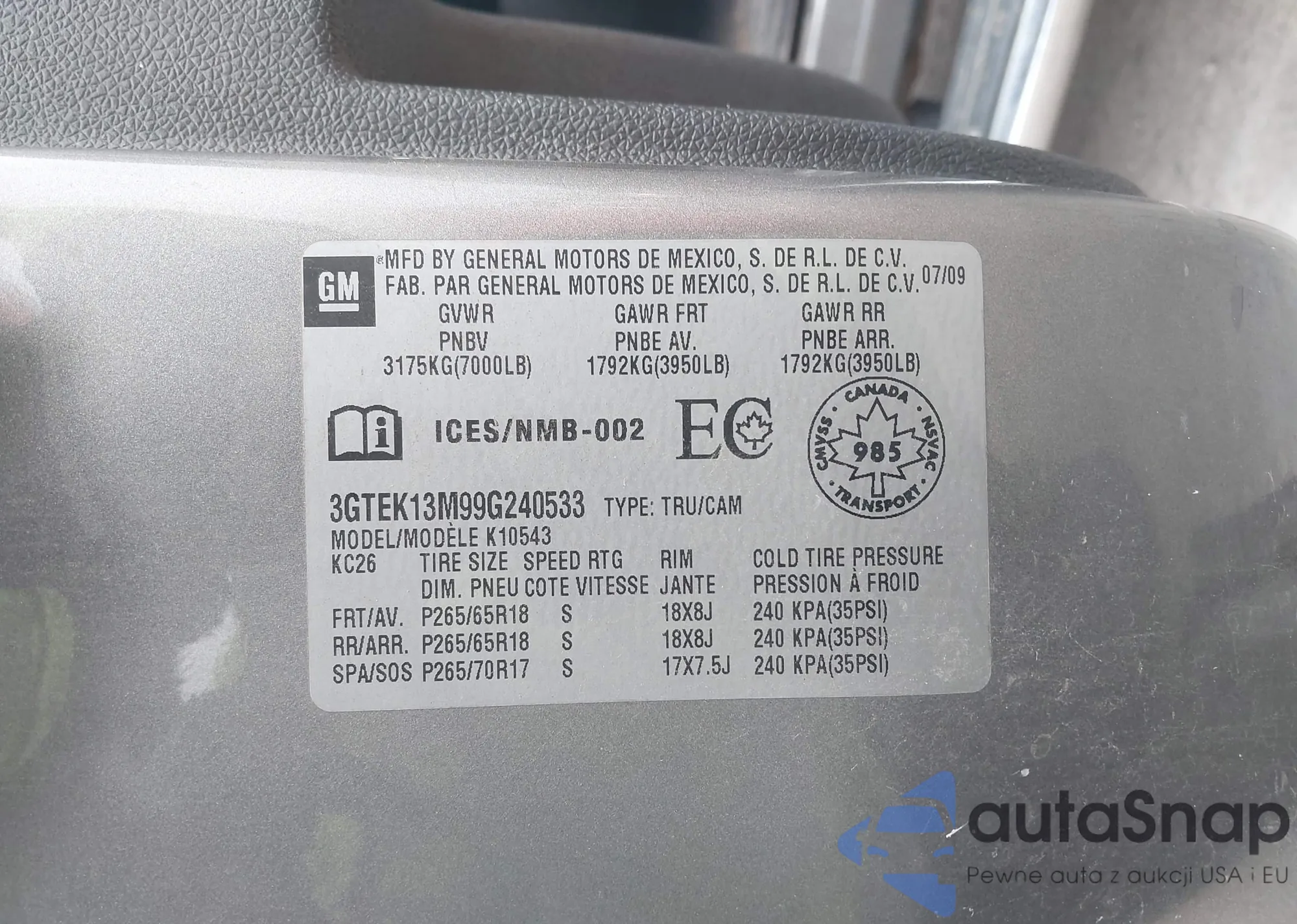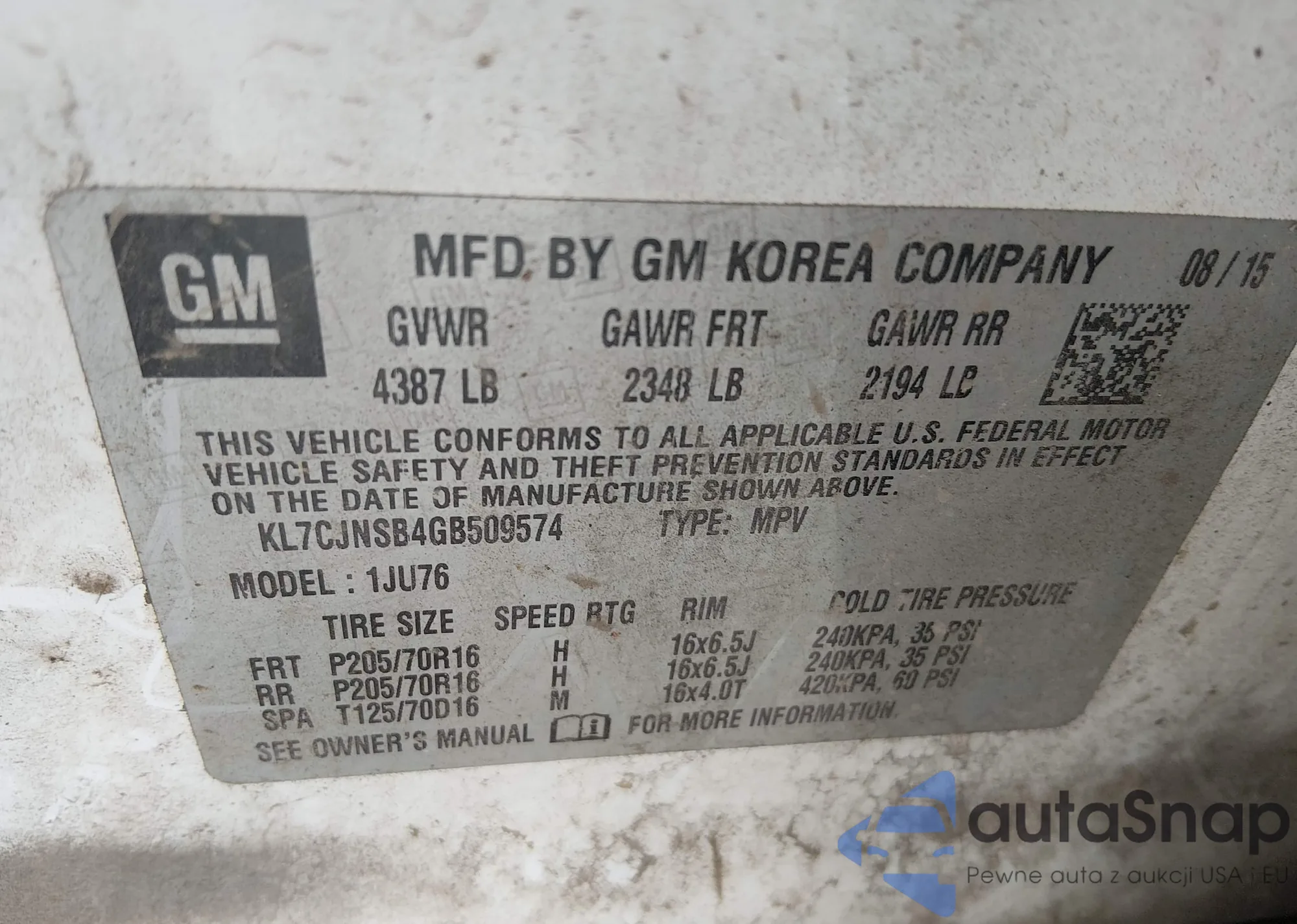 • VIN KL7CJNSB4GB509574