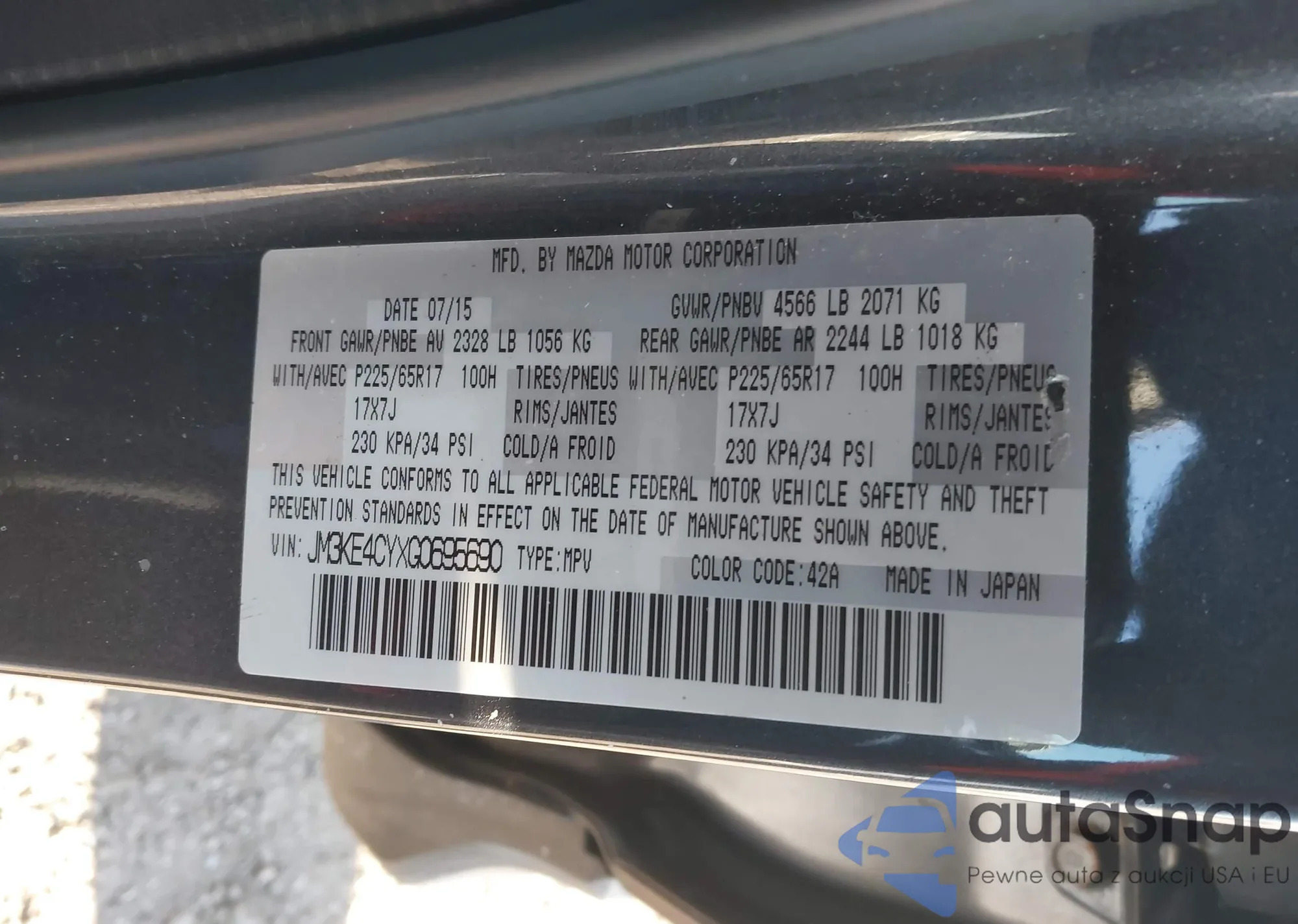 LOT: 44177004 VIN: JM3KE4CYXG0695690