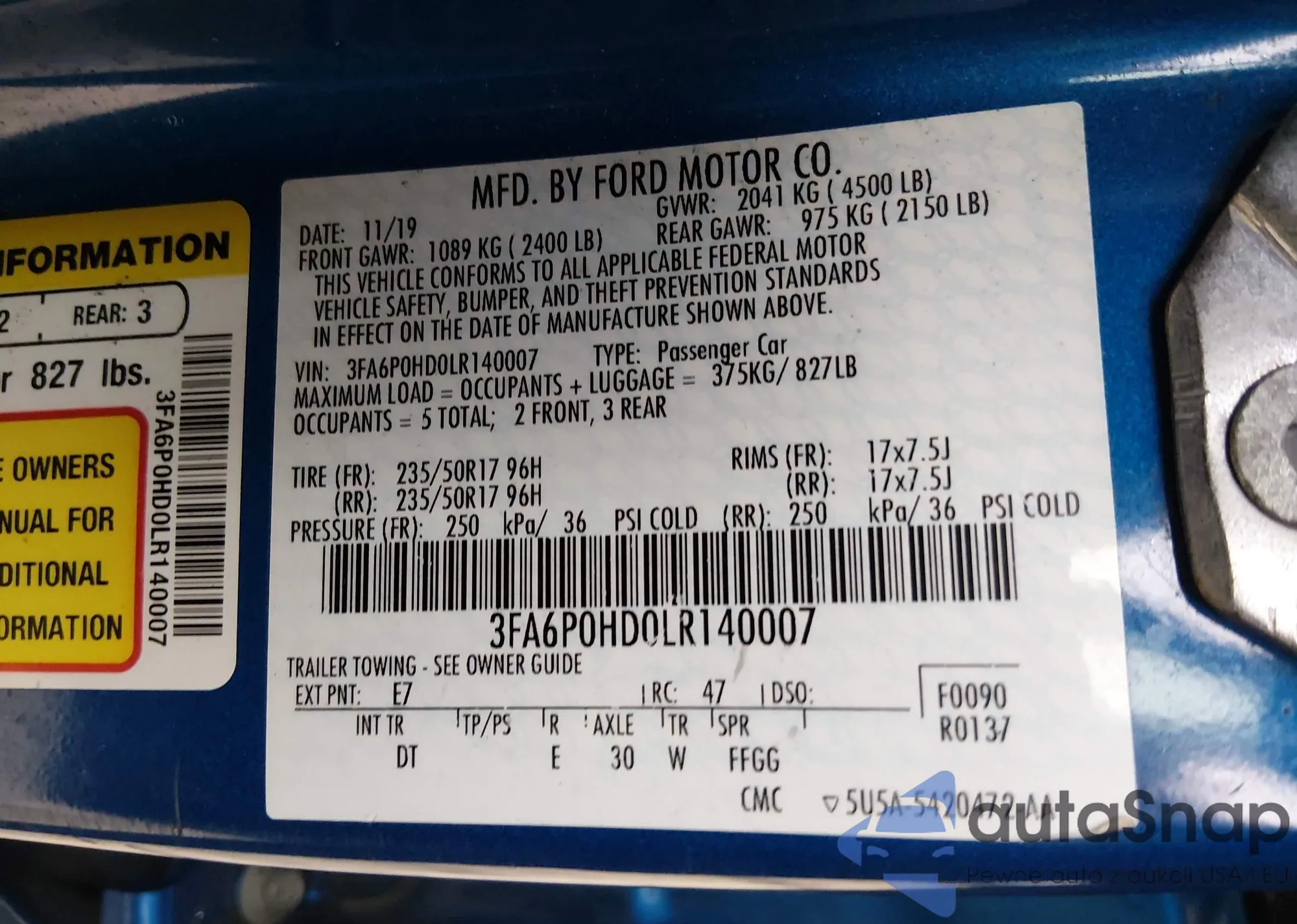 • VIN 1FTSX20537EA30635