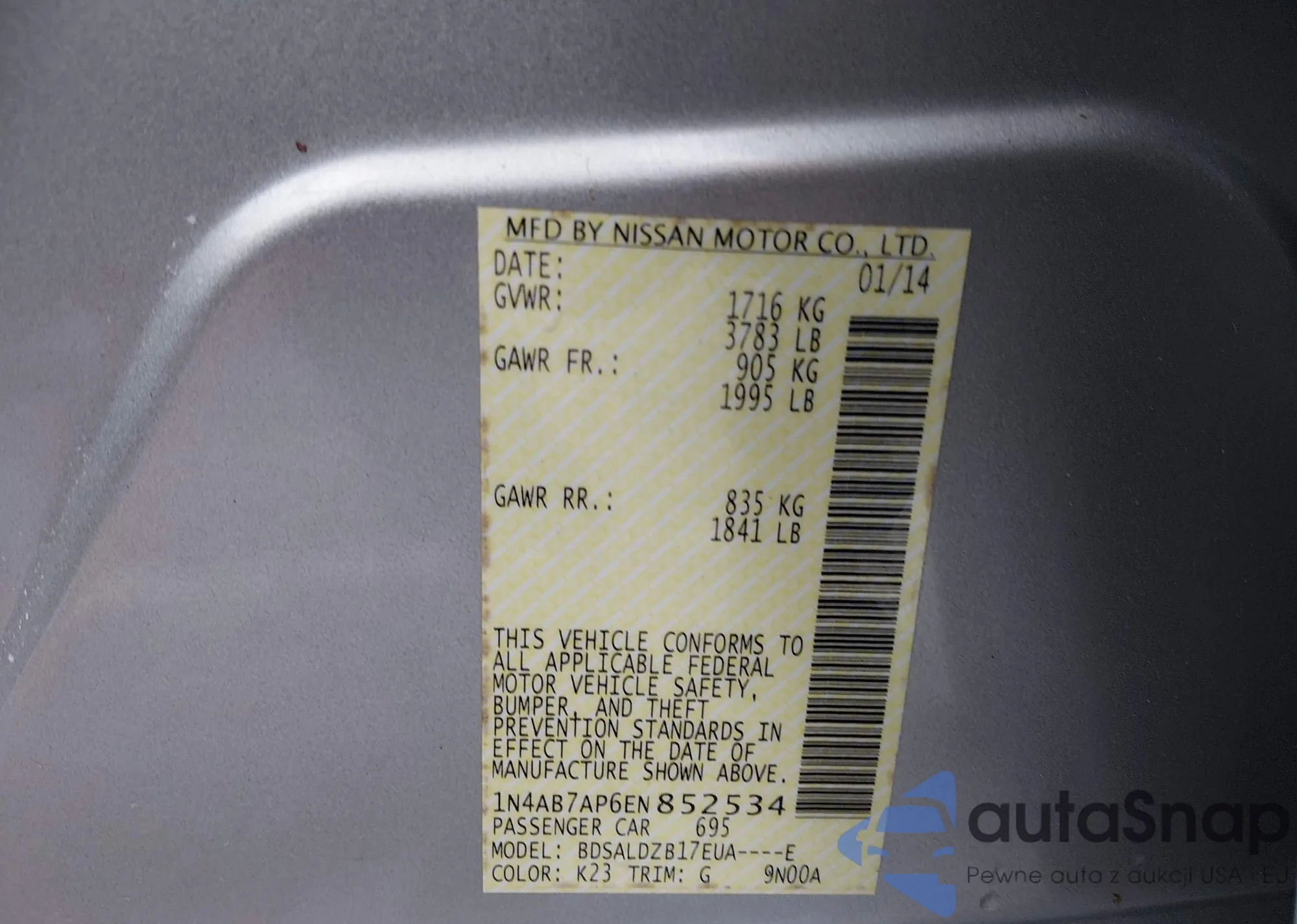 • VIN 1N4AB7AP6EN852534