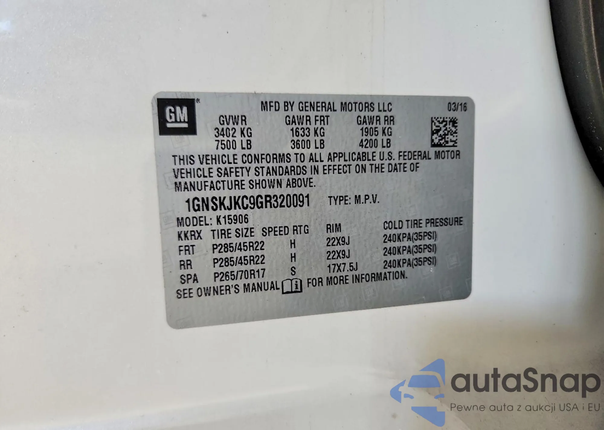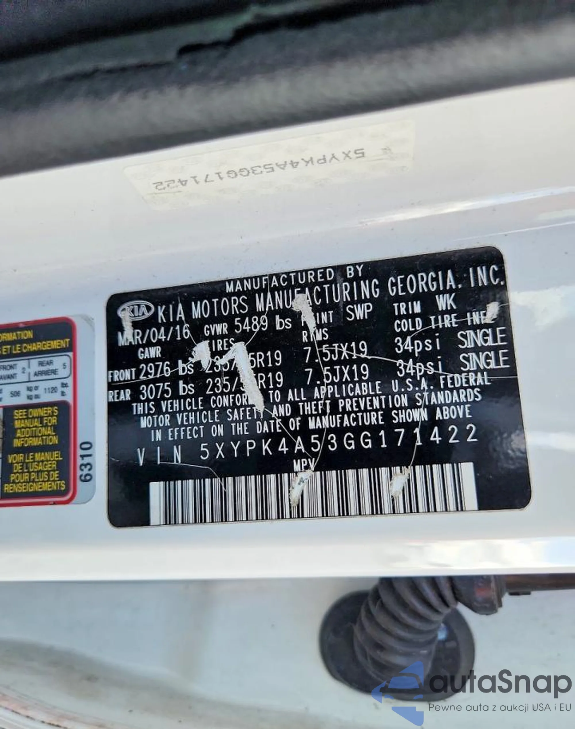 • VIN 5XYPK4A53GG171422
