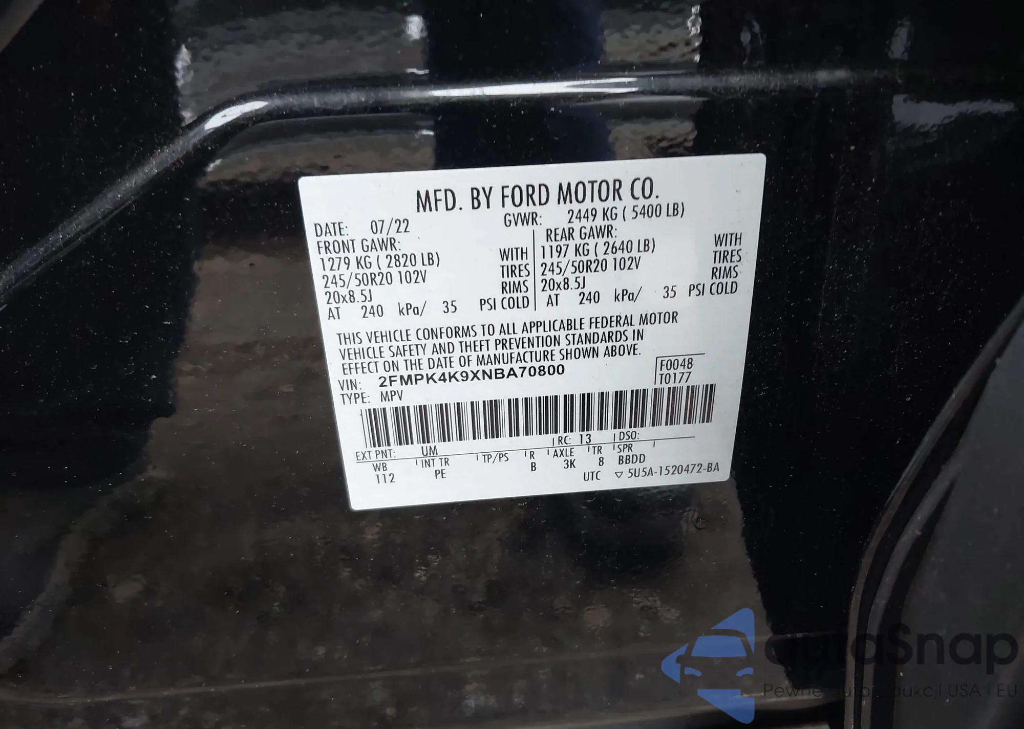 LOT: 44277615 VIN: WBXJG9C03L5P68534