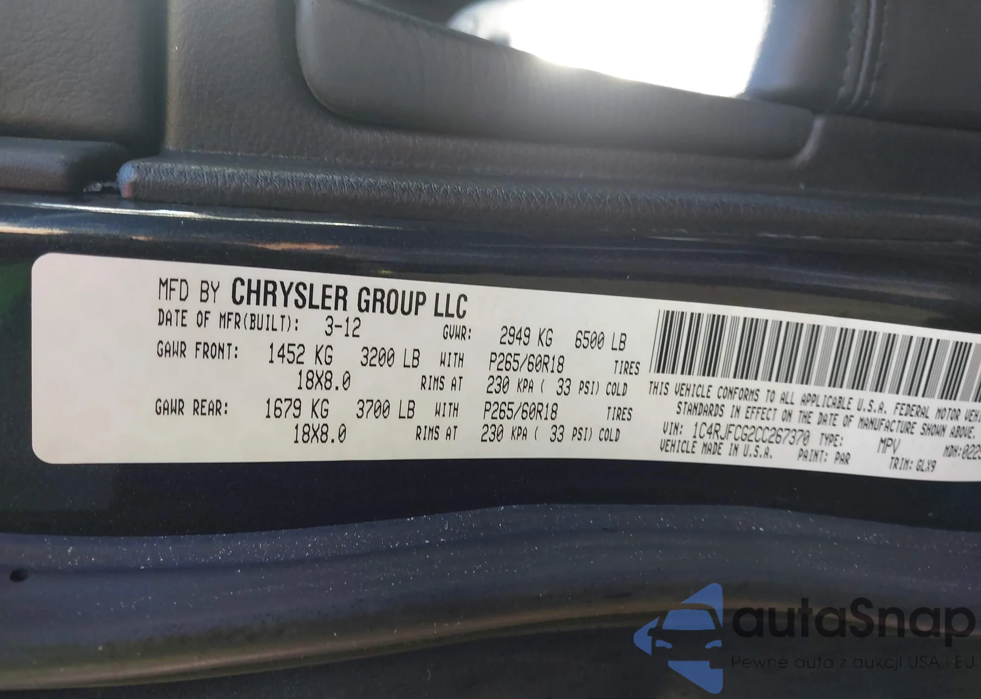 • VIN 1C4RJFCG2CC267370