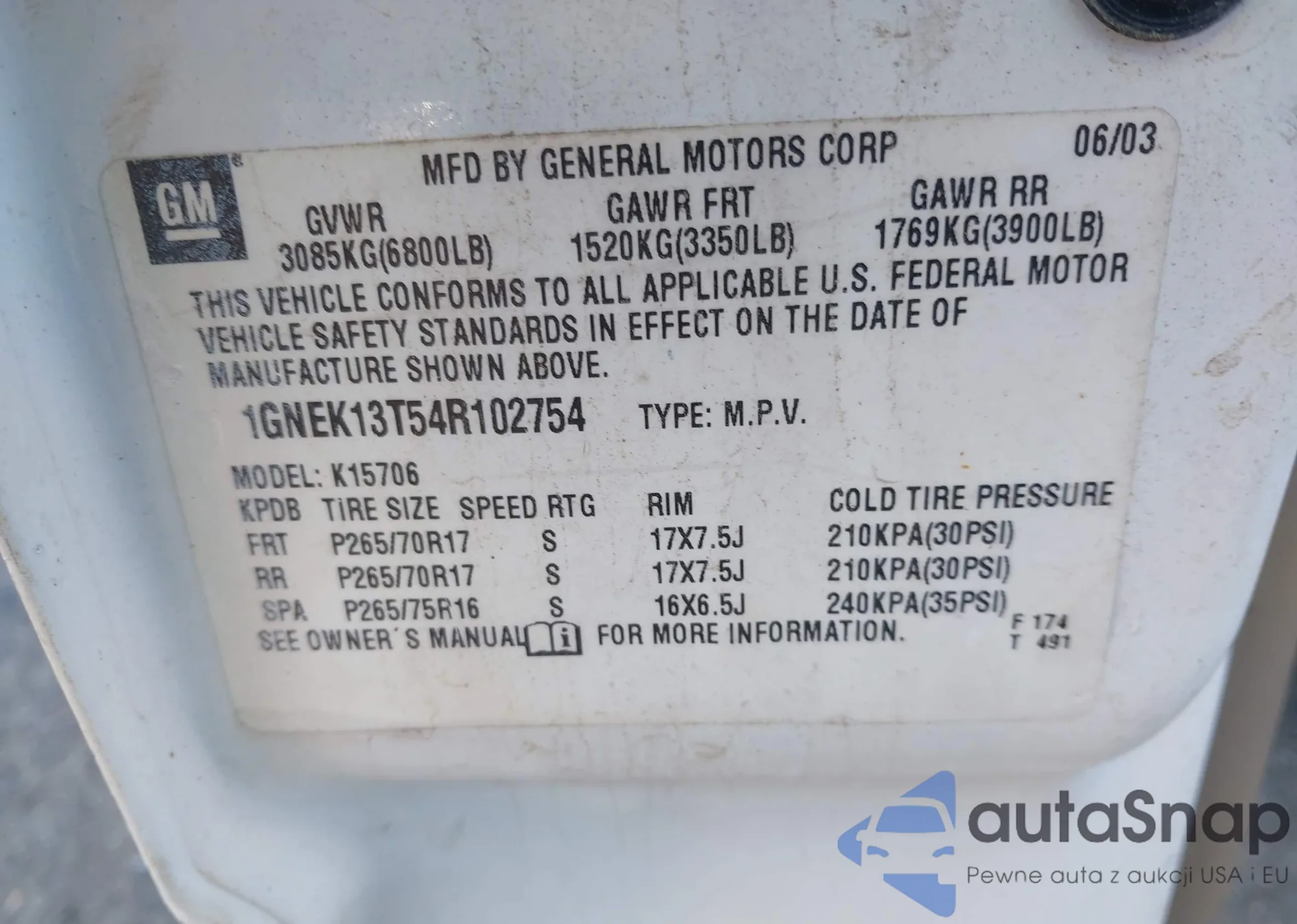 LOT: 35006008 VIN: 1GNEK13T54R102754