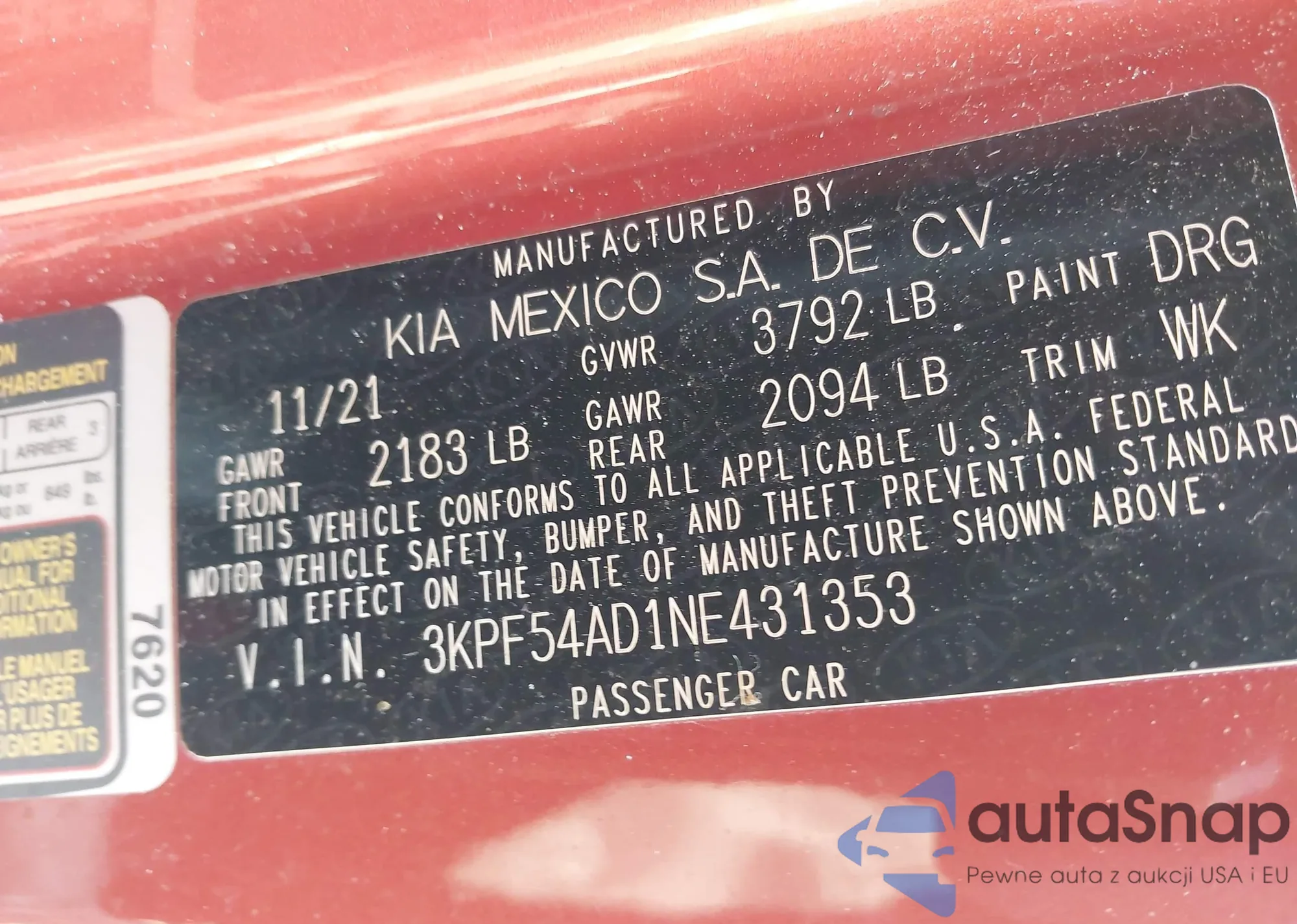 • VIN 3KPF54AD1NE431353