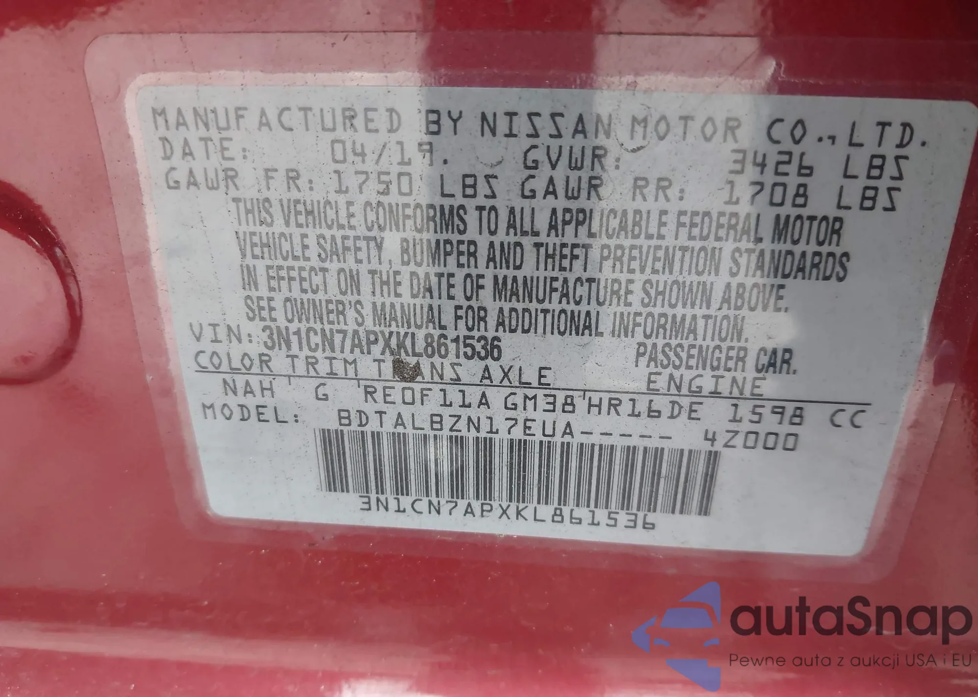 • VIN JN1BJ1CRXKW353810