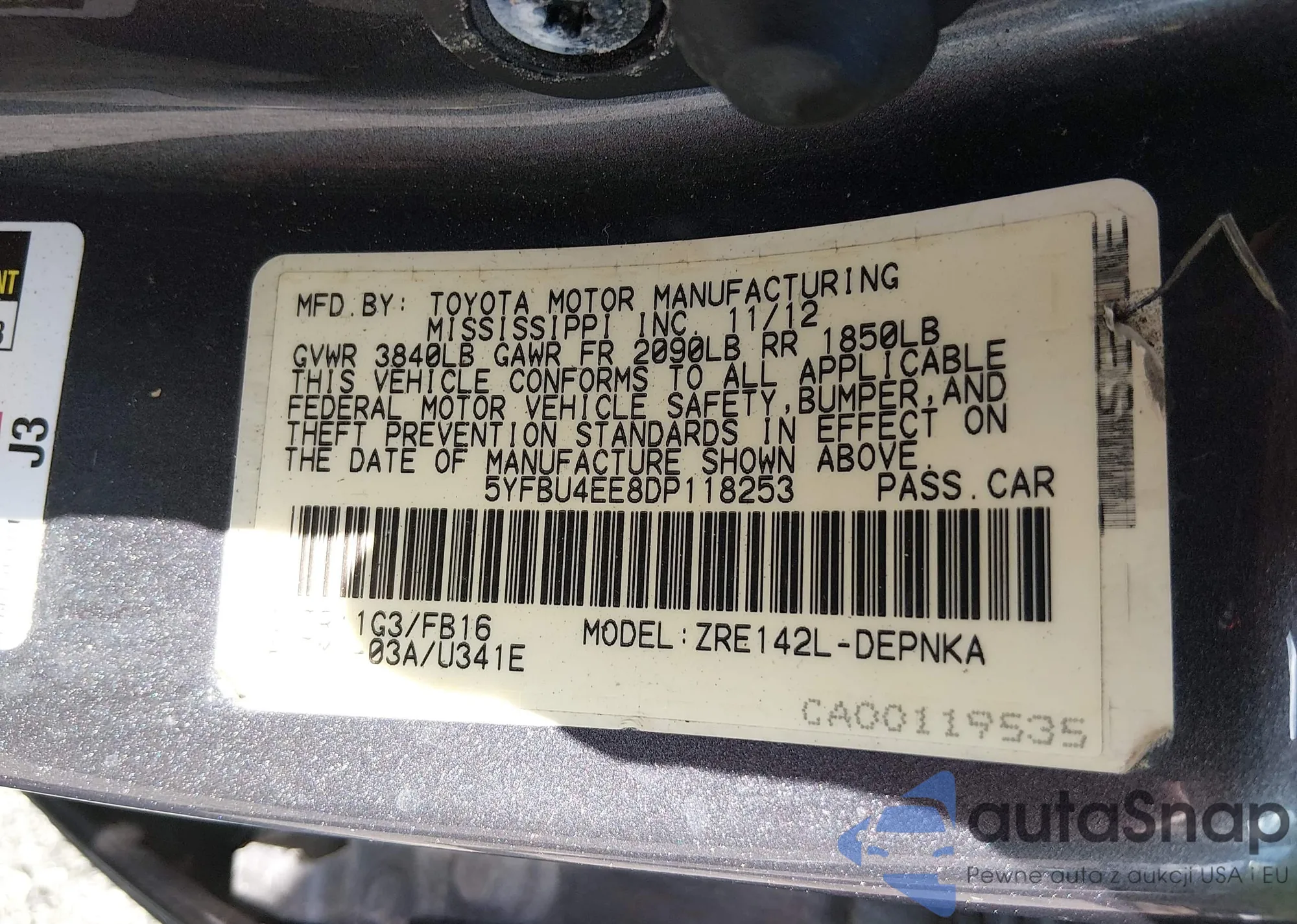 • VIN 5YFBU4EE8DP118253