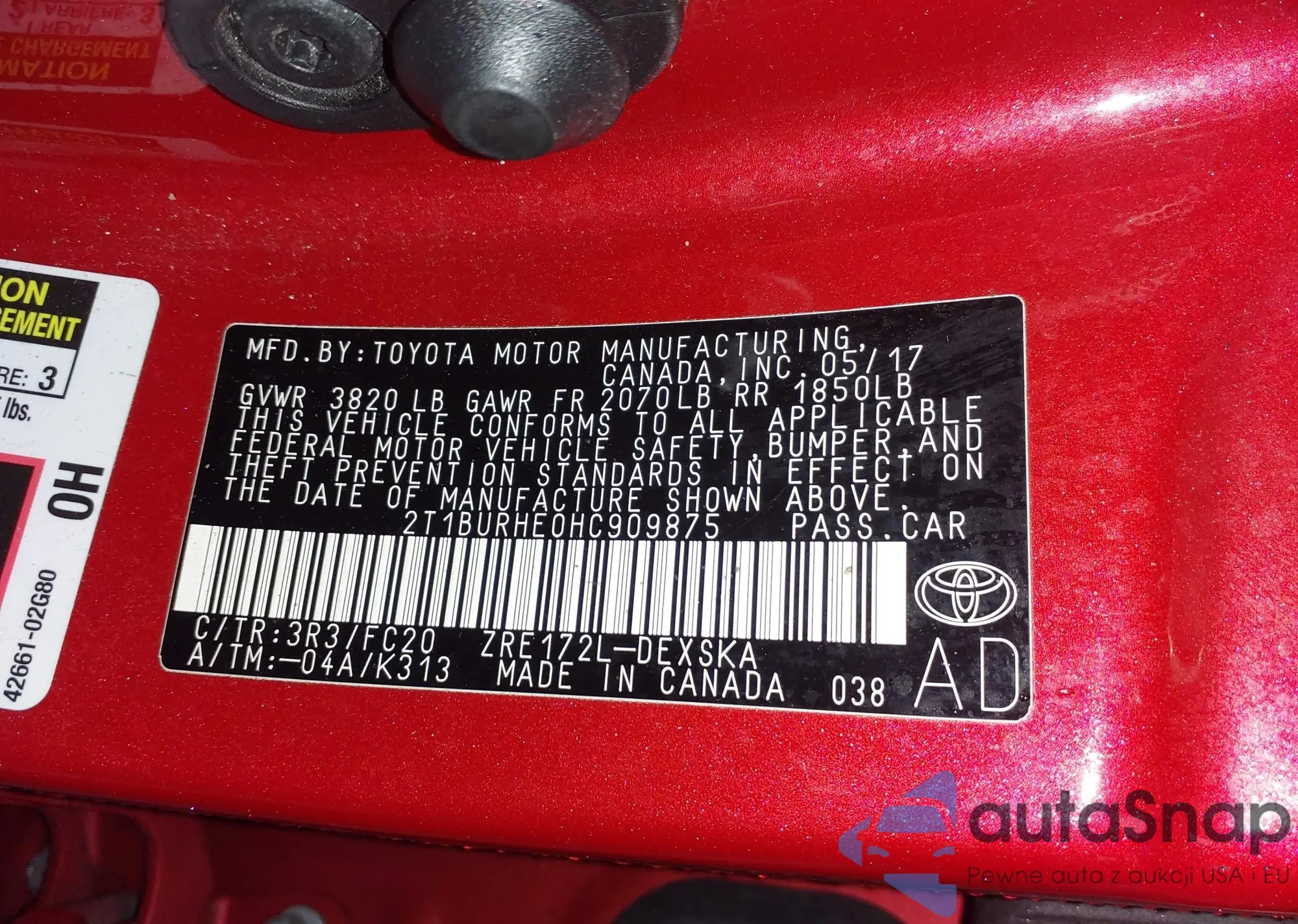 LOT: 44003943 VIN: 4T1DAACKXSU619634