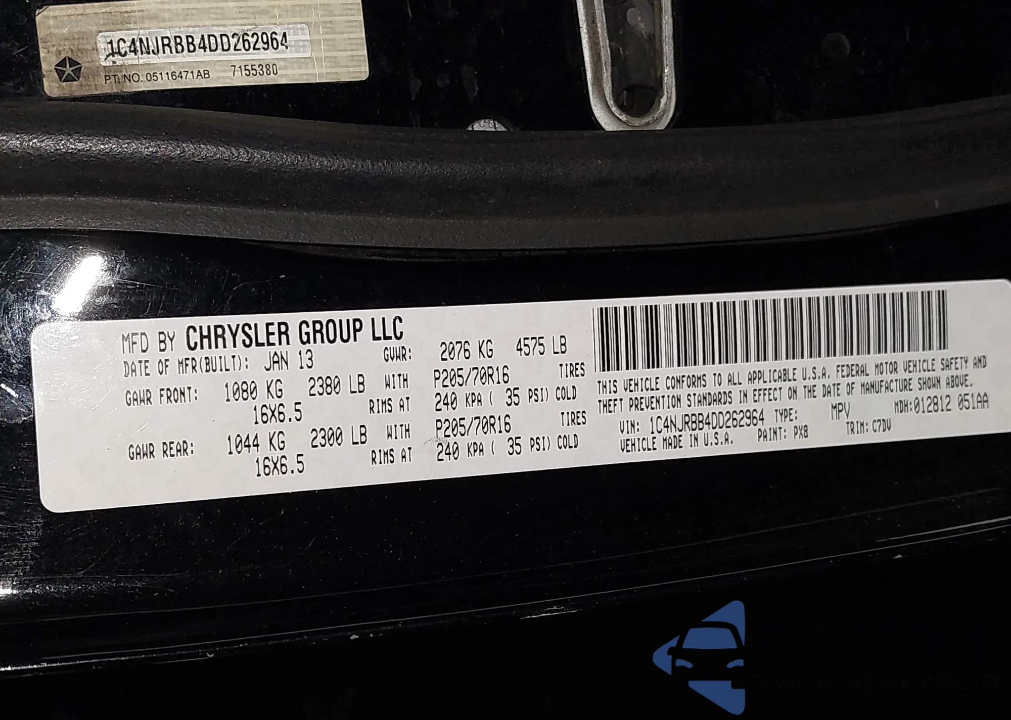 • VIN 1C4NJRBB4DD262964