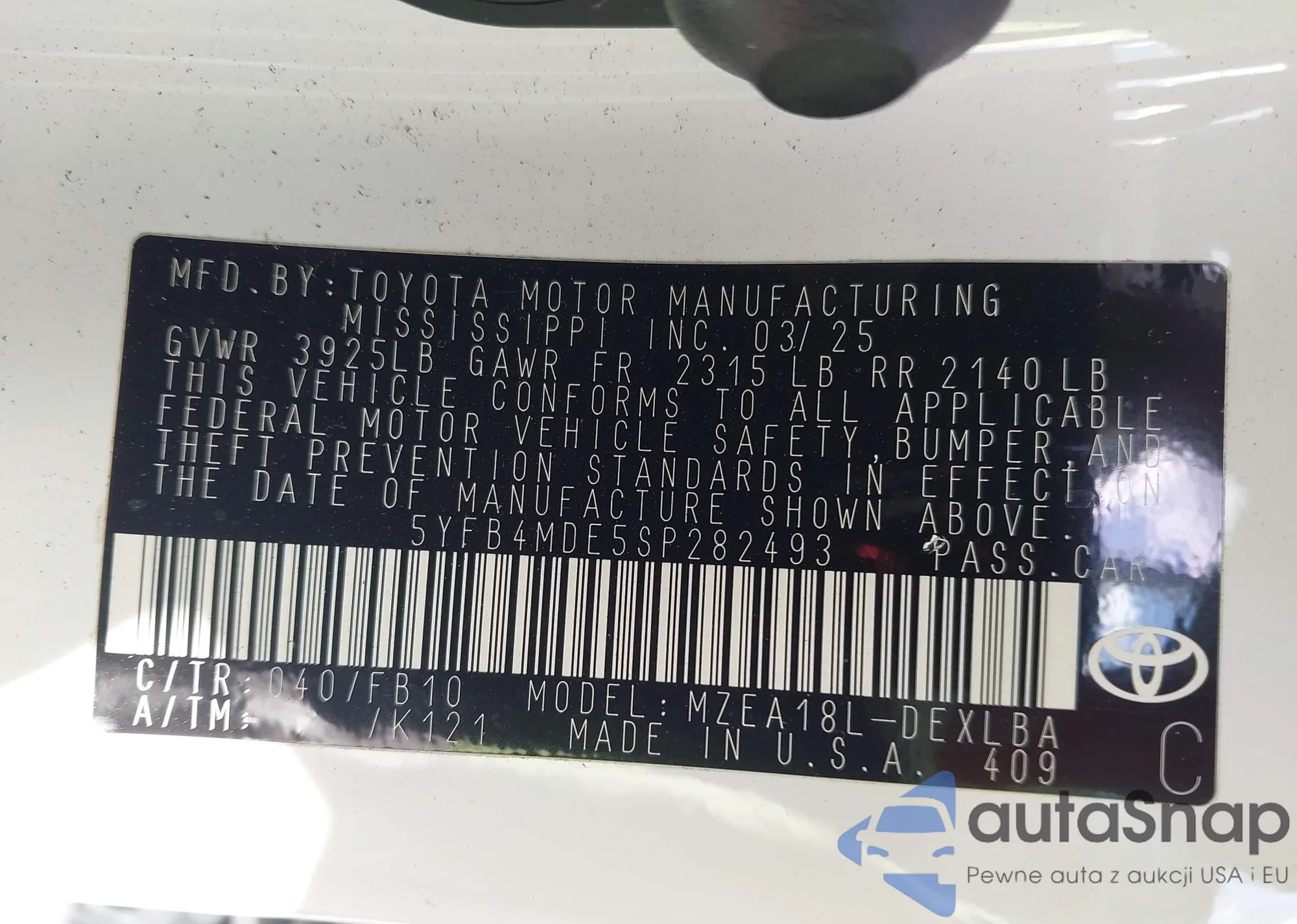 • VIN 5YFB4MDE5SP282493