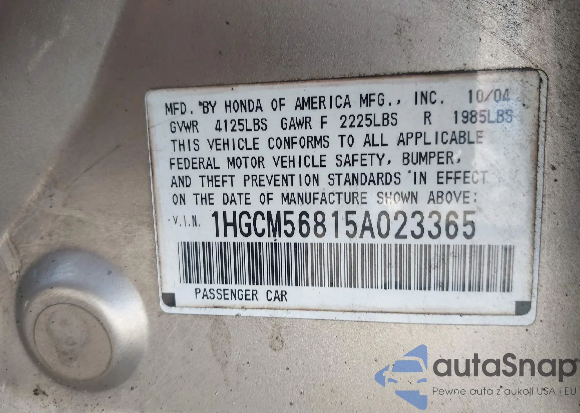 LOT: 44334001 VIN: 1HGCM56815A023365