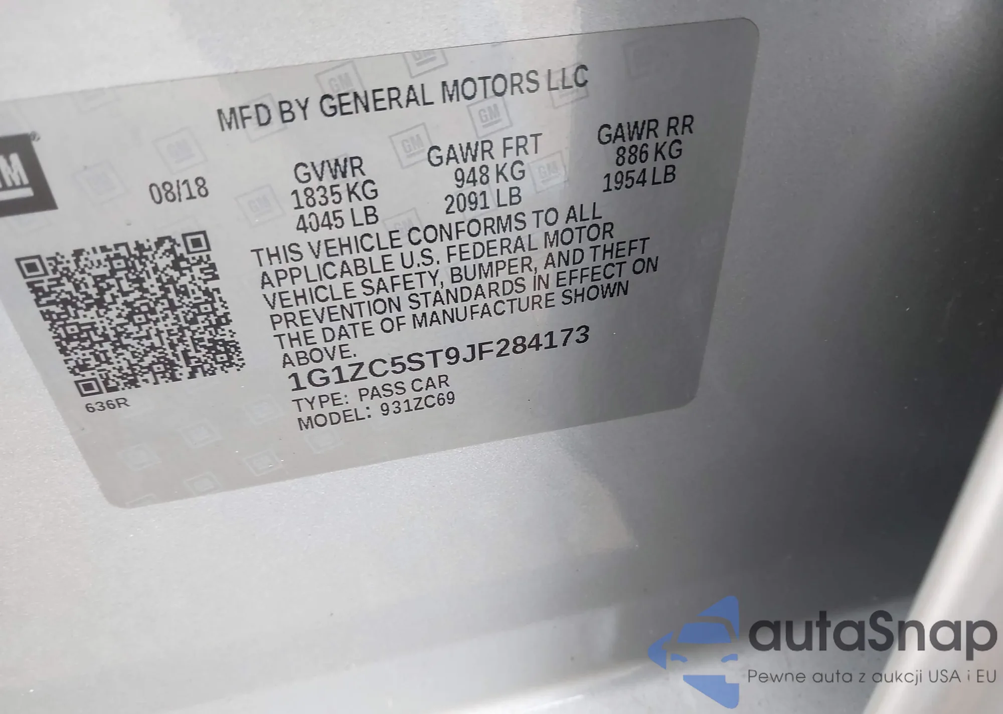 • VIN 1G1ZC5ST9JF284173