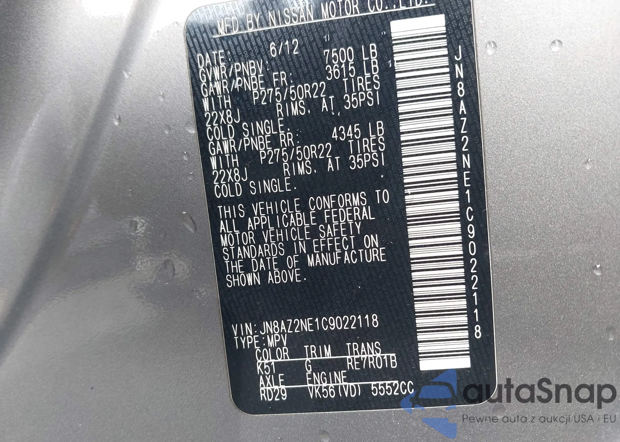 • VIN 5XYZTDLB2JG505732