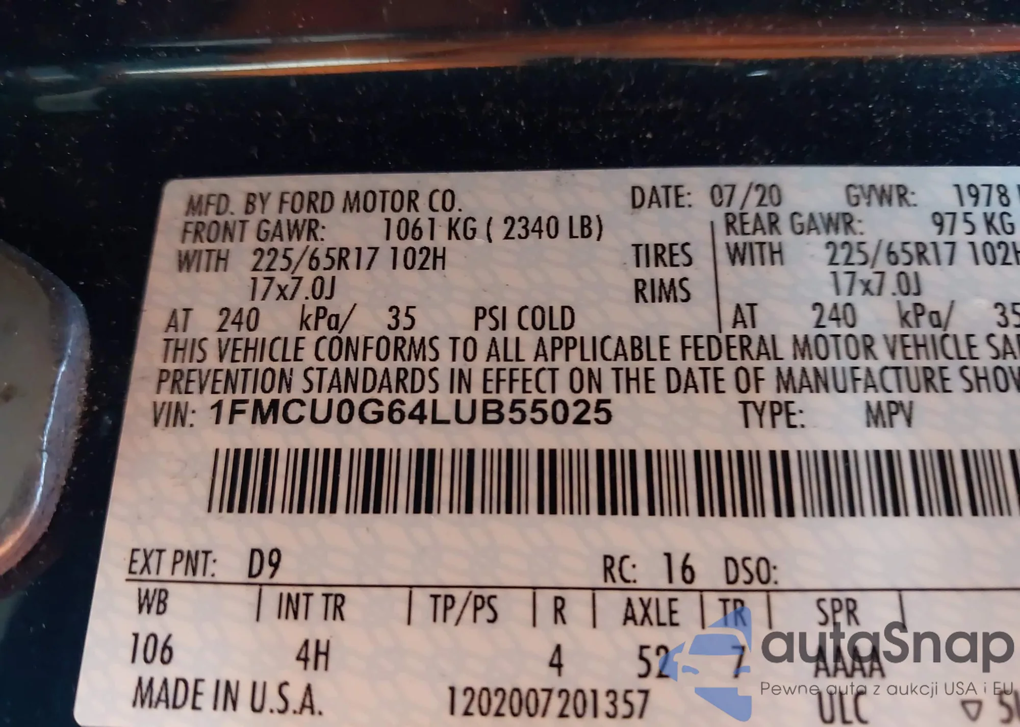 LOT: 44208082 VIN: KL4CJCSB0FB253367