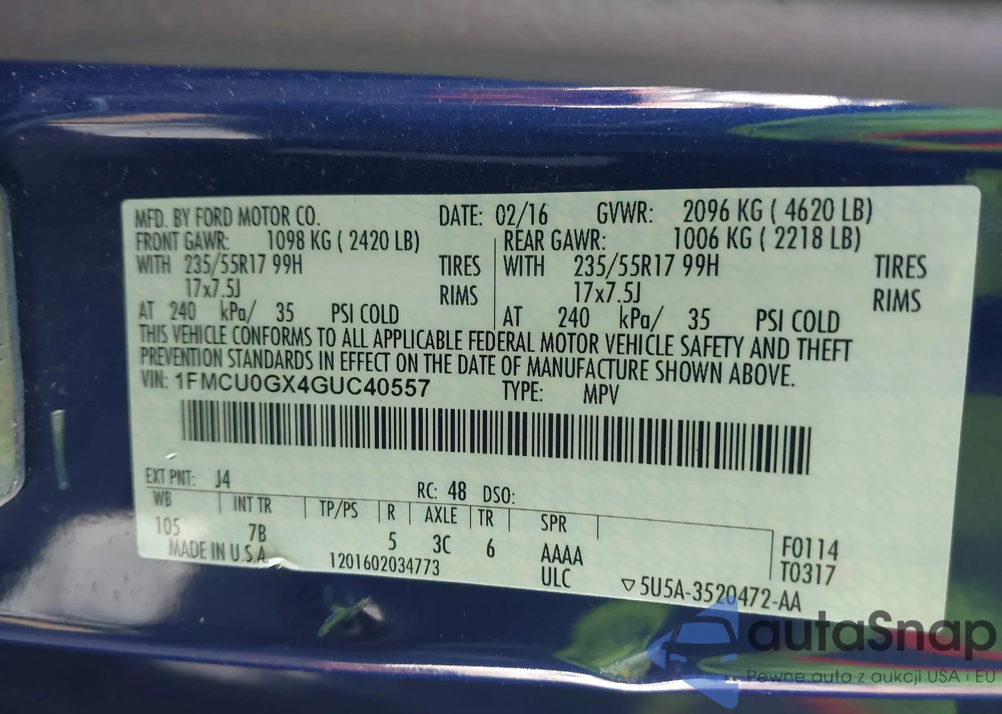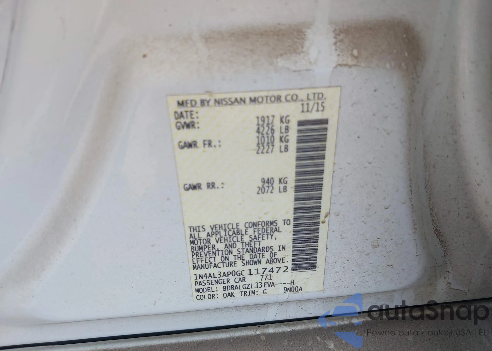 • VIN 1N4AL3AP0GC117472