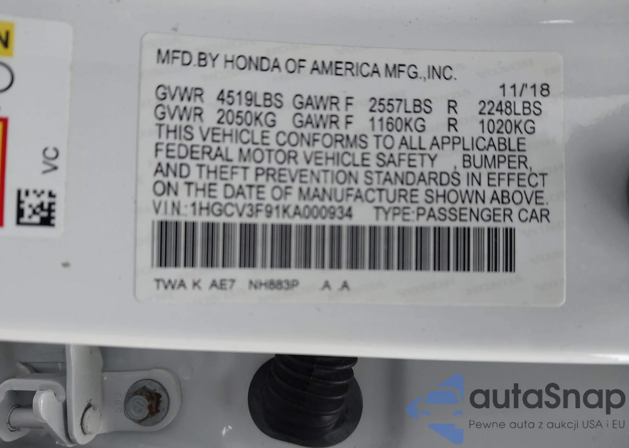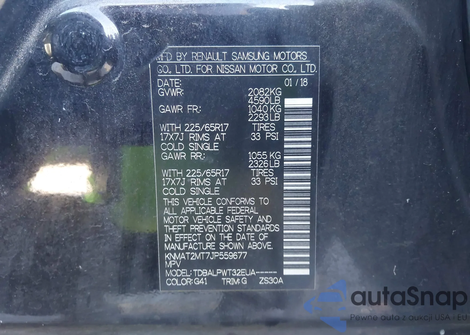 LOT: 43432178 VIN: KNMAT2MT7JP559677