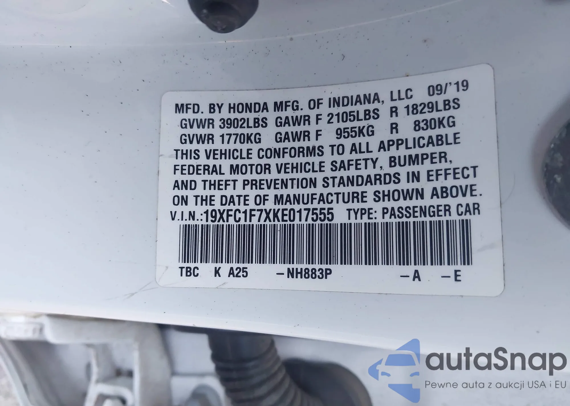 LOT: 44155347 VIN: 5NMSH13E98H193842