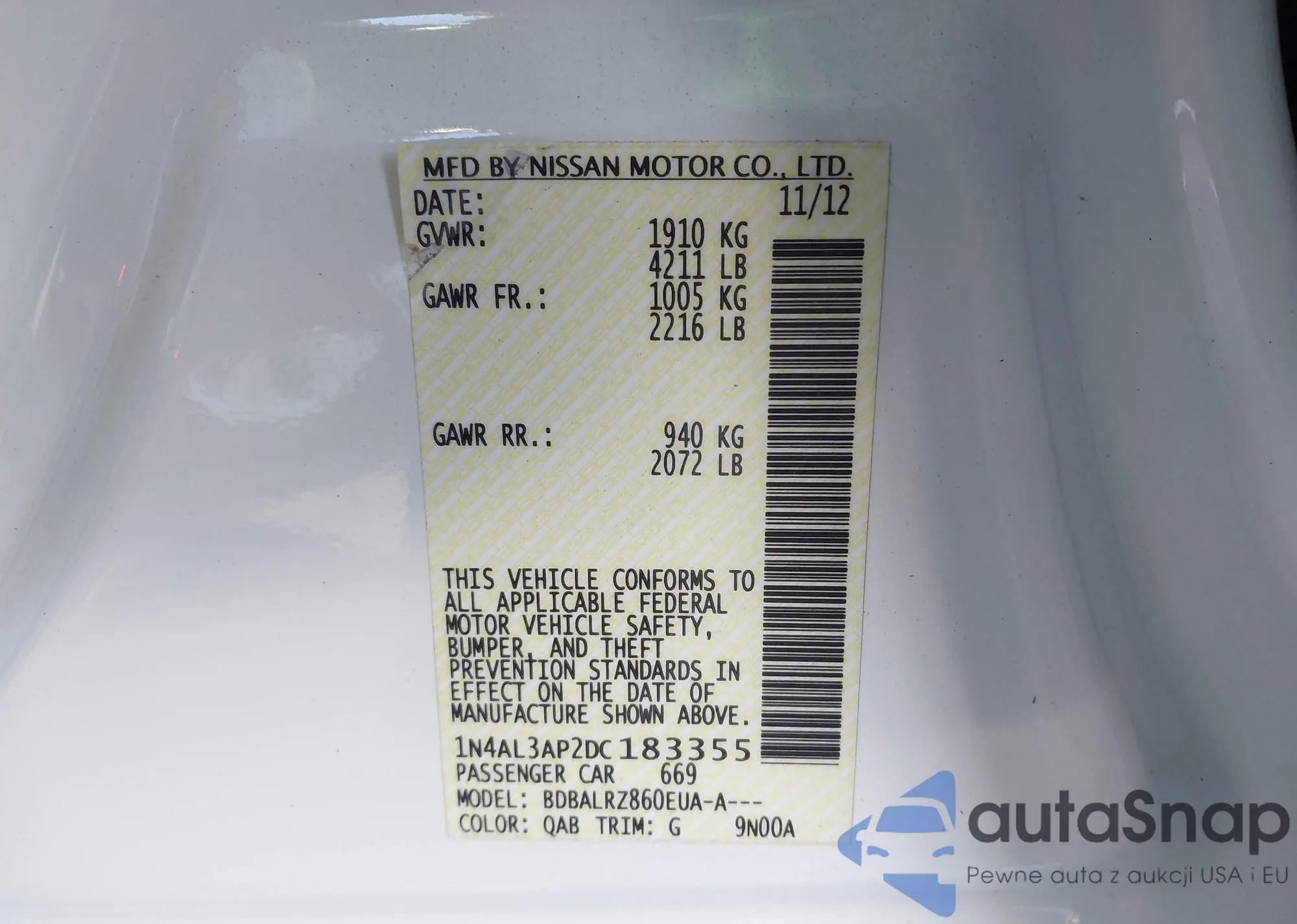 • VIN 3N1AB8CV6MY297522