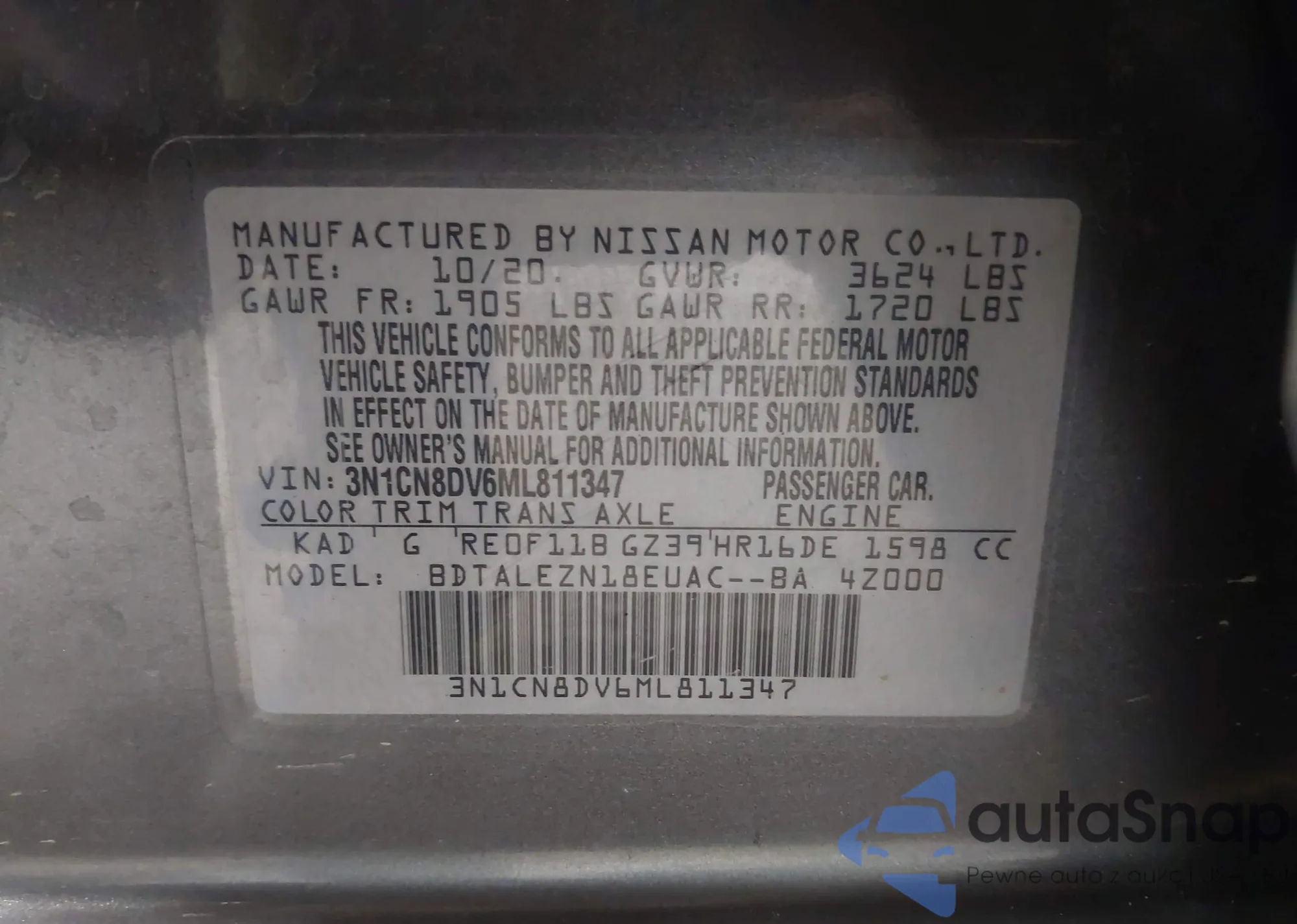 • VIN 3N1CN8DV6ML811347