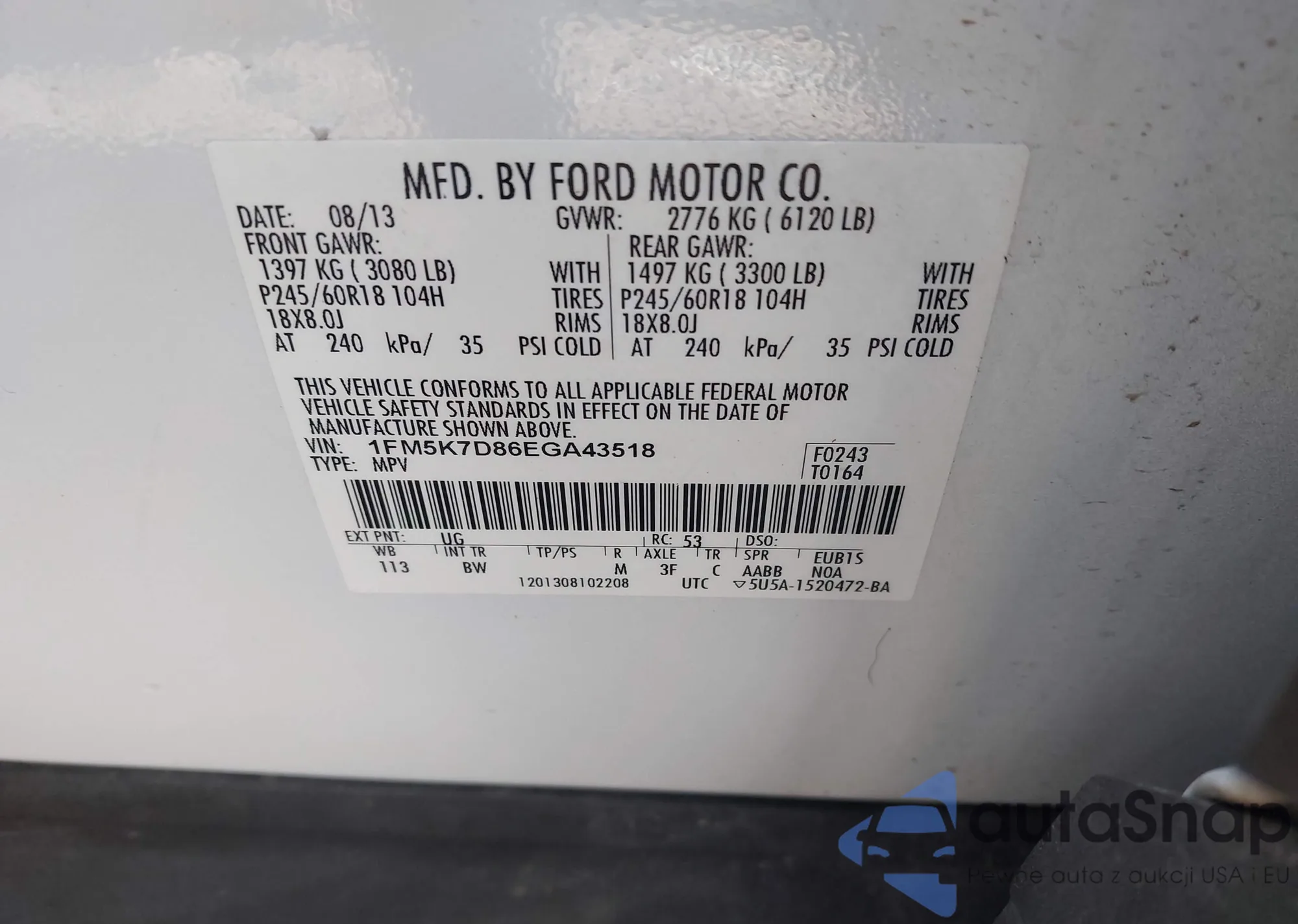 LOT: 43950030 VIN: 1FM5K7D86EGA43518