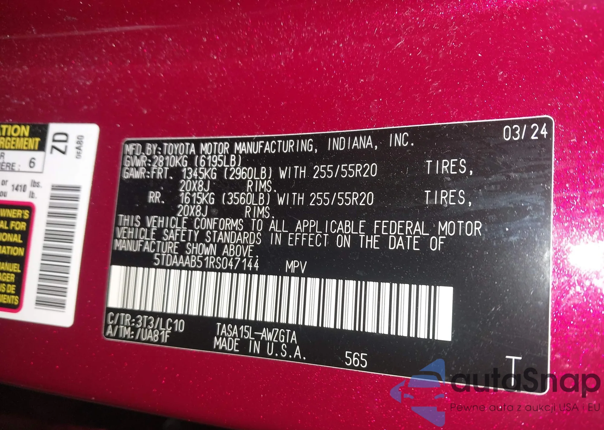 LOT: 44027972 VIN: 5TDAAAB51RS047144