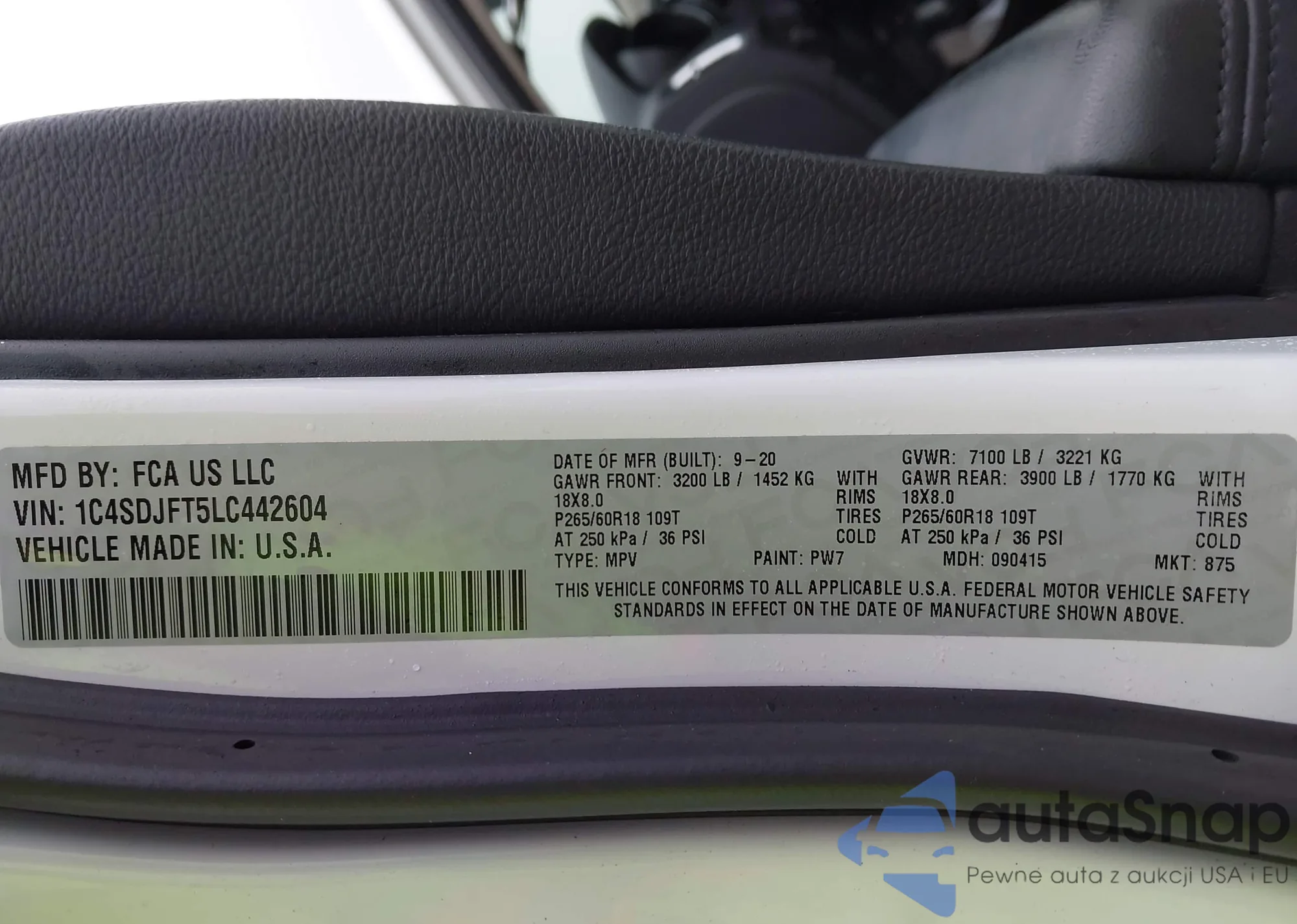 • VIN 1C4SDJFT5LC442604