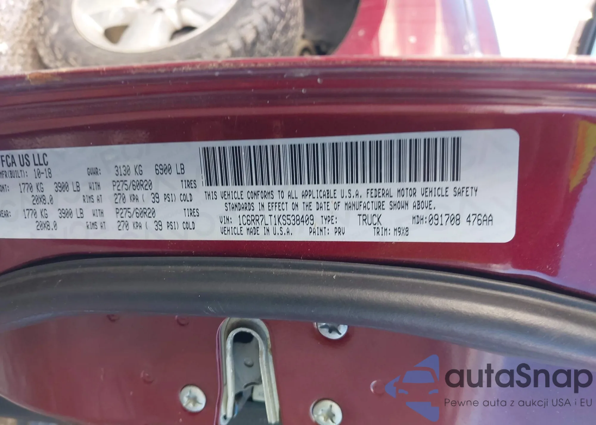 • VIN 1C6RR7LT1KS538409