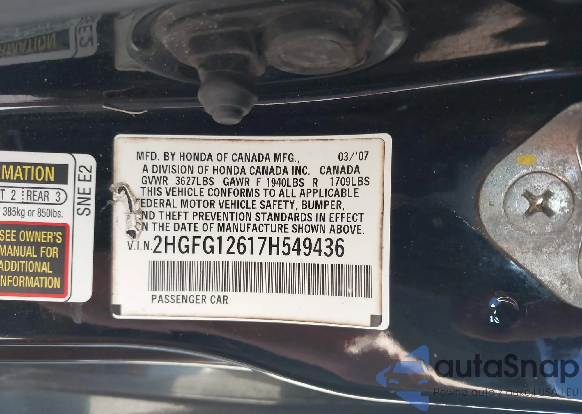 LOT: 43917060 VIN: 19XFA16569E046405