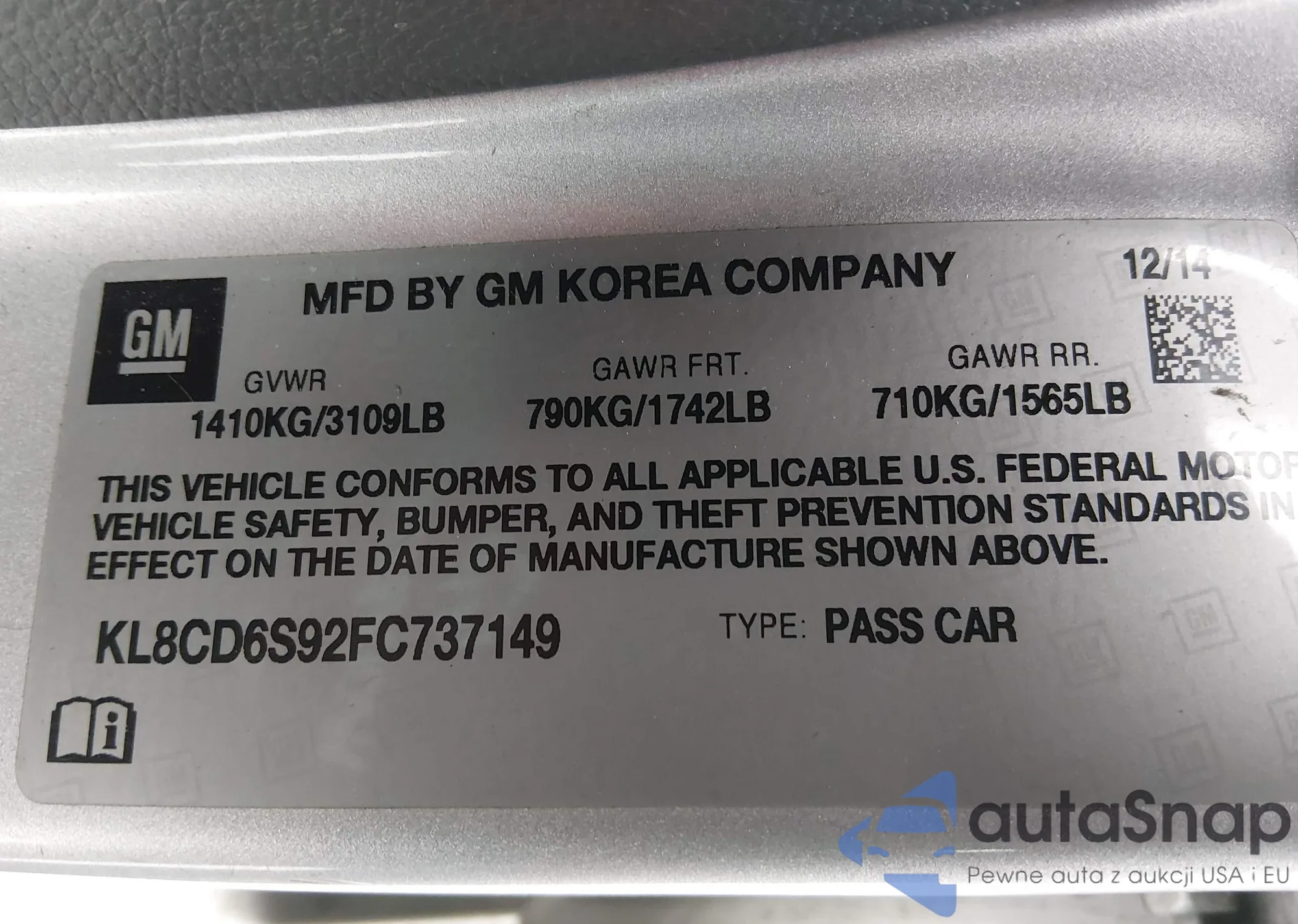 • VIN KL8CD6S92FC737149