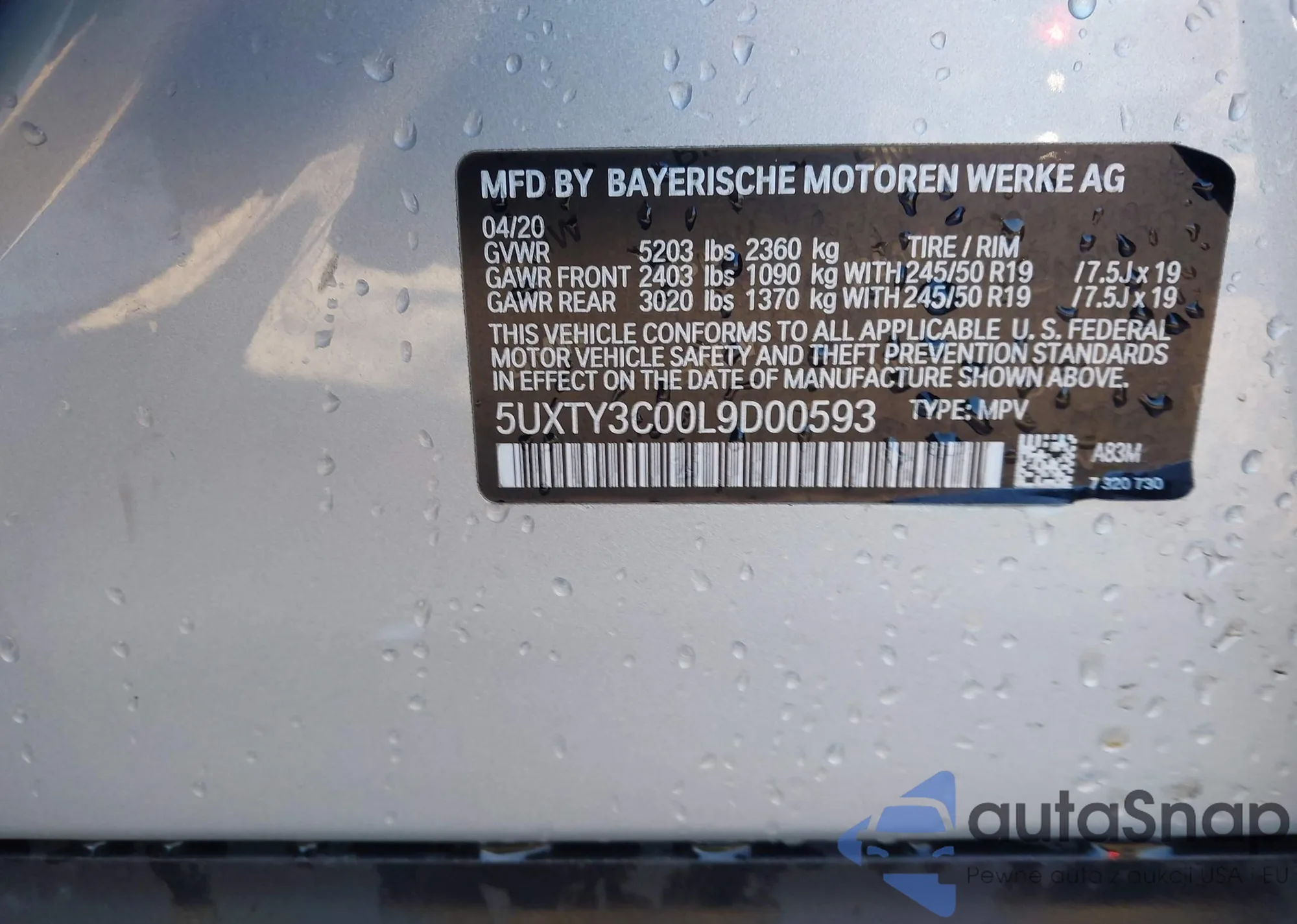 LOT: 44242553 VIN: 5UXTY3C00L9D00593