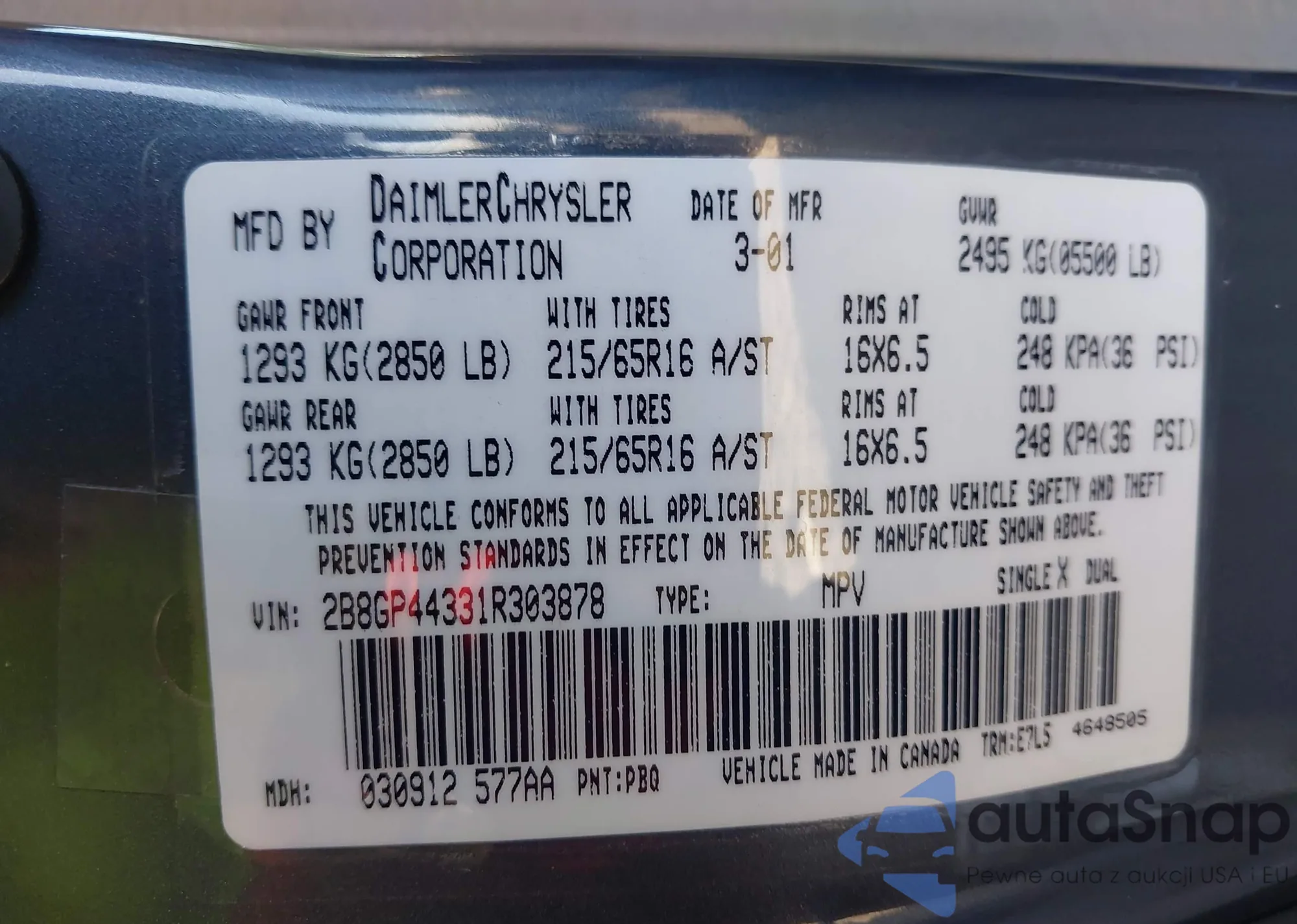 • VIN 2B8GP44331R303878