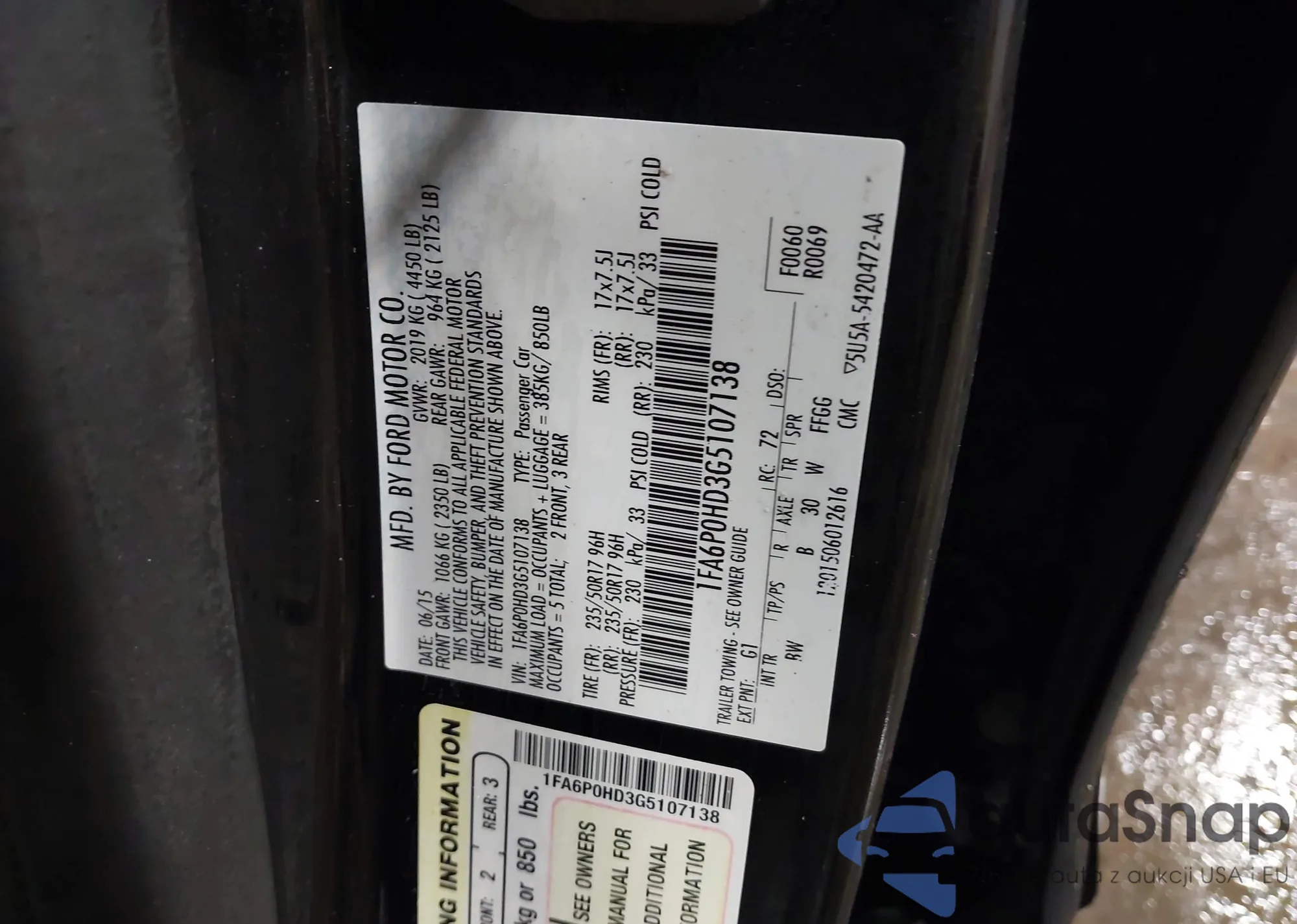 • VIN 1FA6P0HD3G5107138