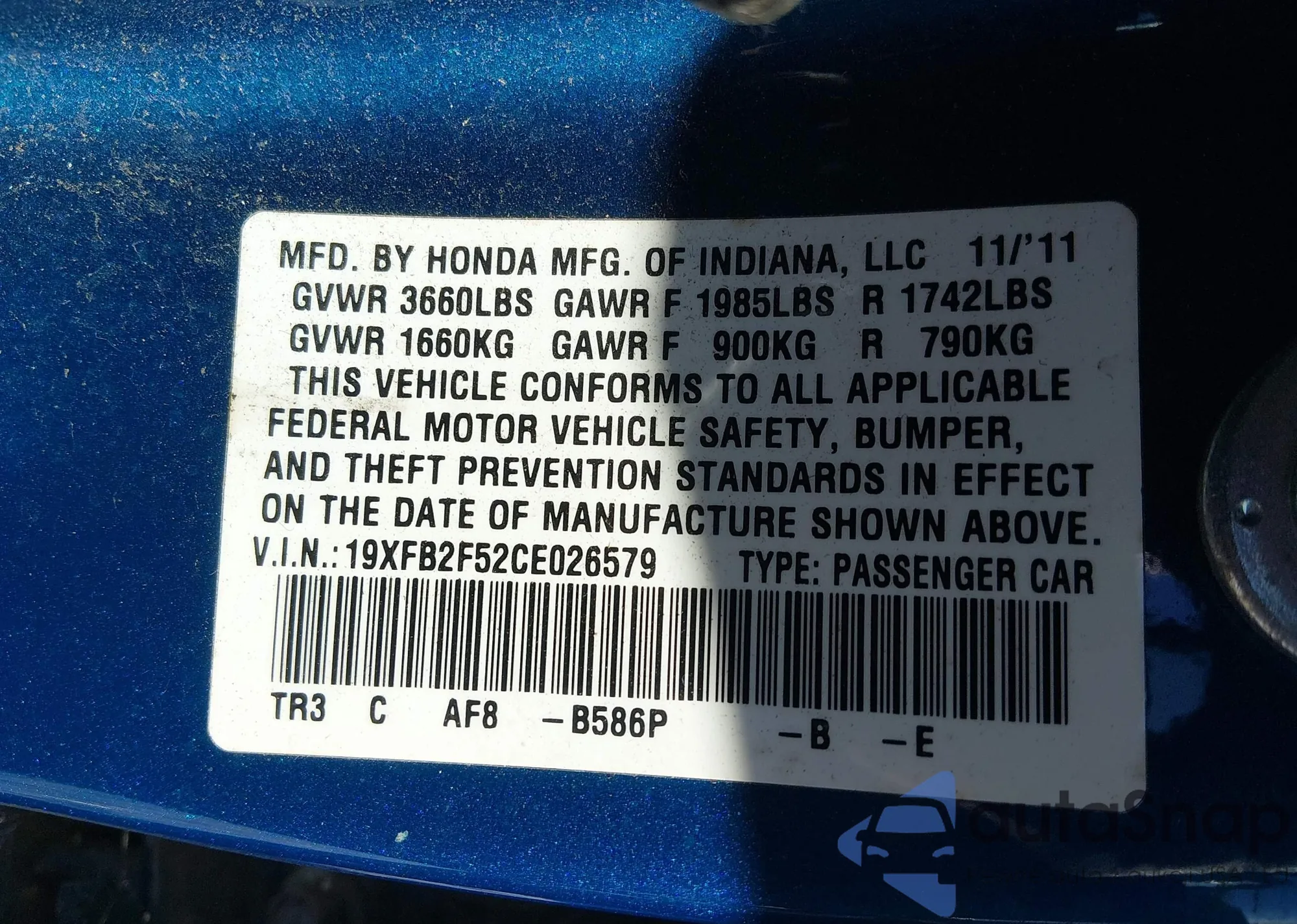 • VIN 19XFB2F52CE026579