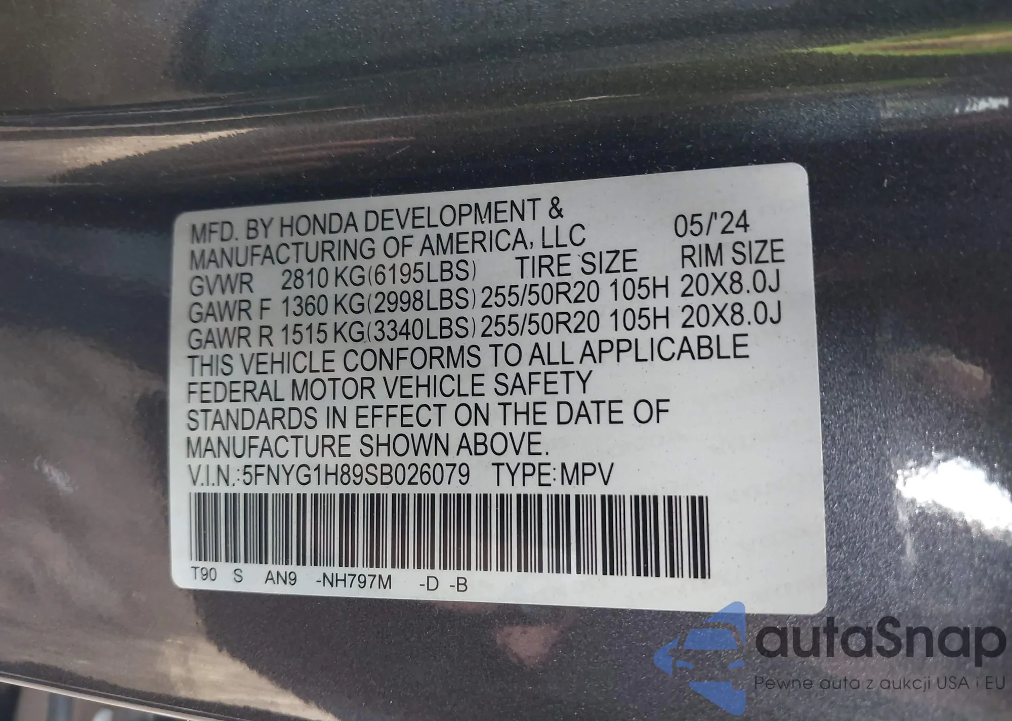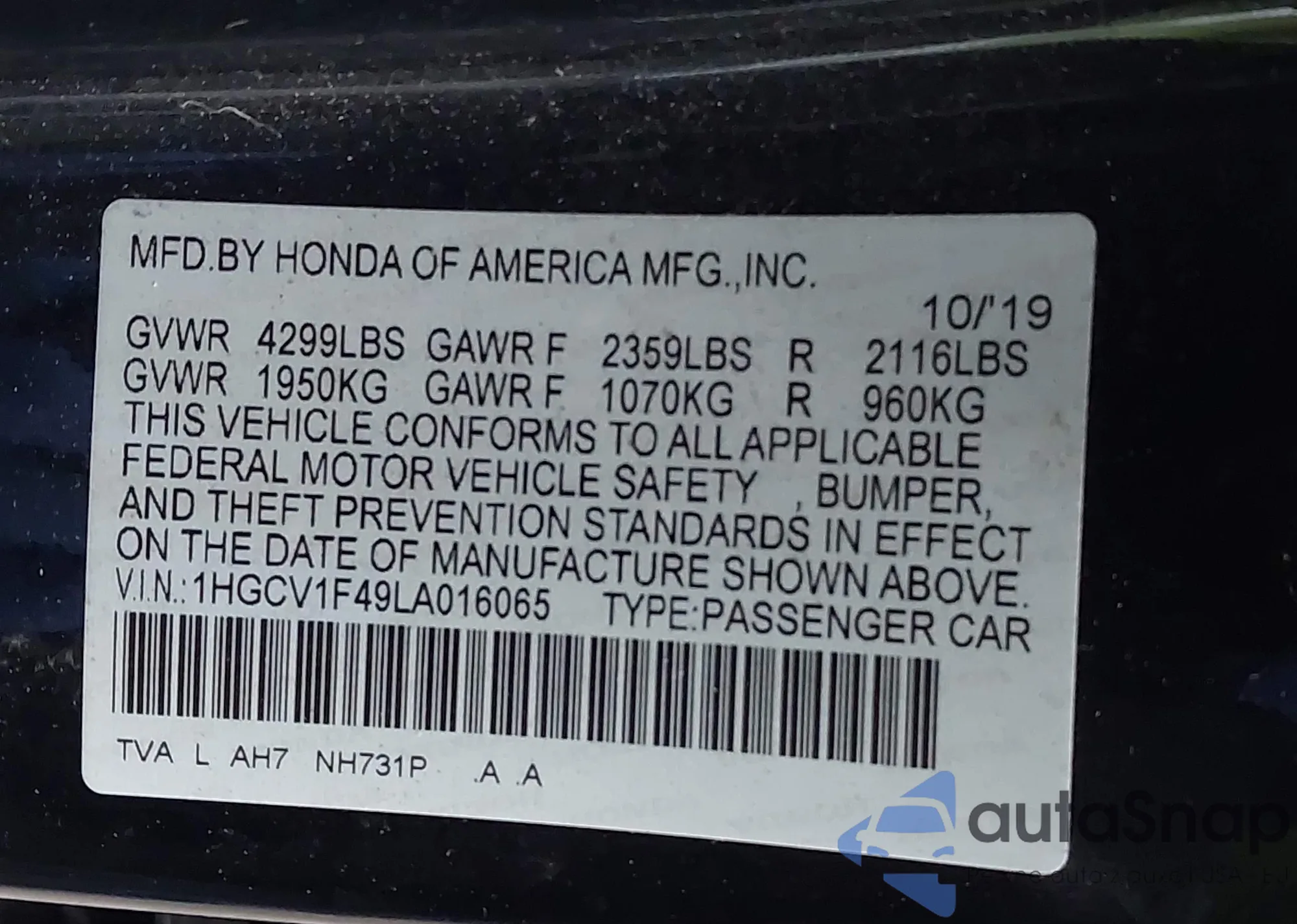 • VIN 1HGCV1F49LA016065