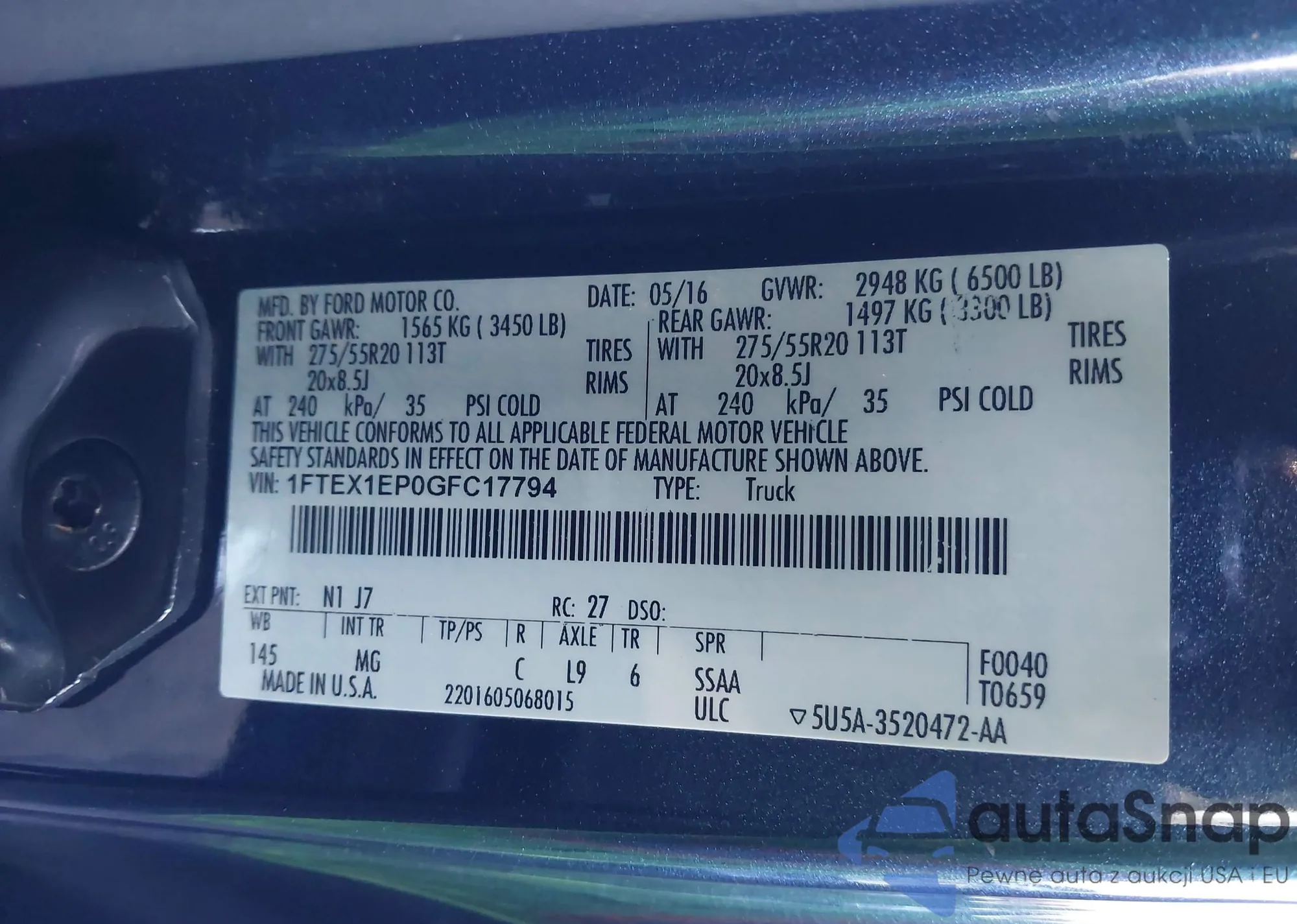2016 Ford F-150 Xlt из США, поврежденный, VIN 1FTEX1EP0GFC17794