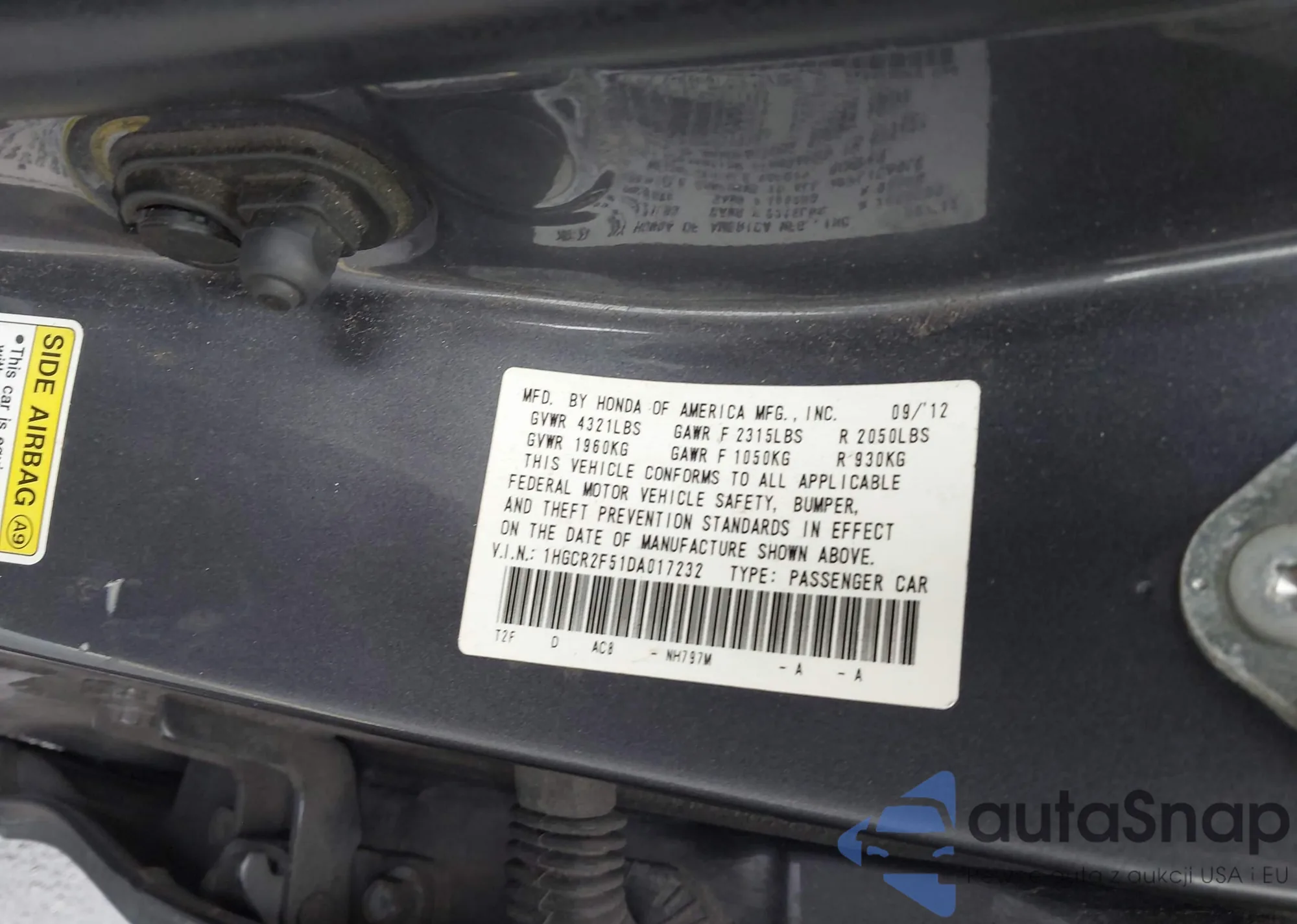• VIN 1HGCR2F51DA017232
