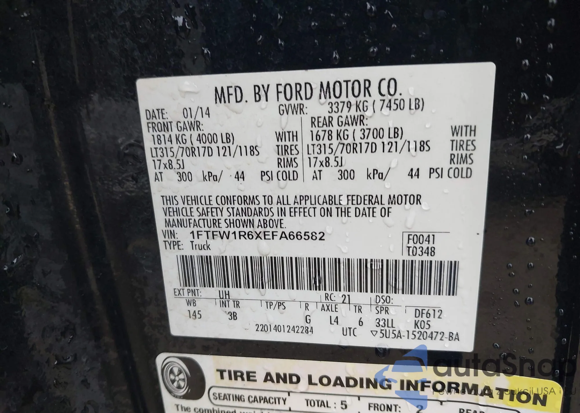 LOT: 44378903 VIN: WA1LFAFP2FA104766