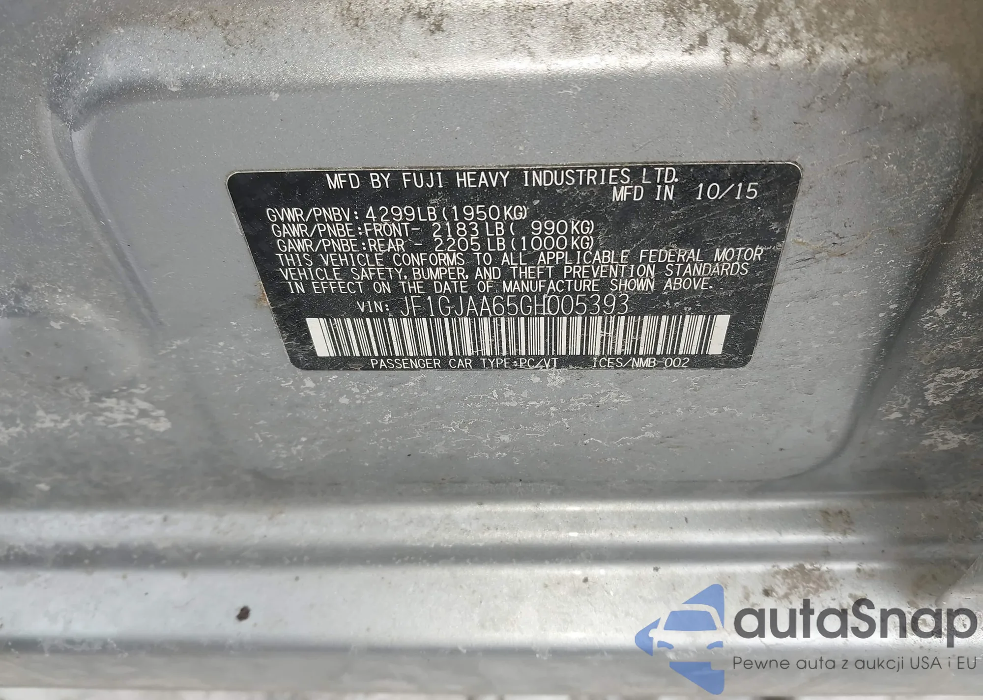 LOT: 44367875 VIN: JF1GE6B66BG503293