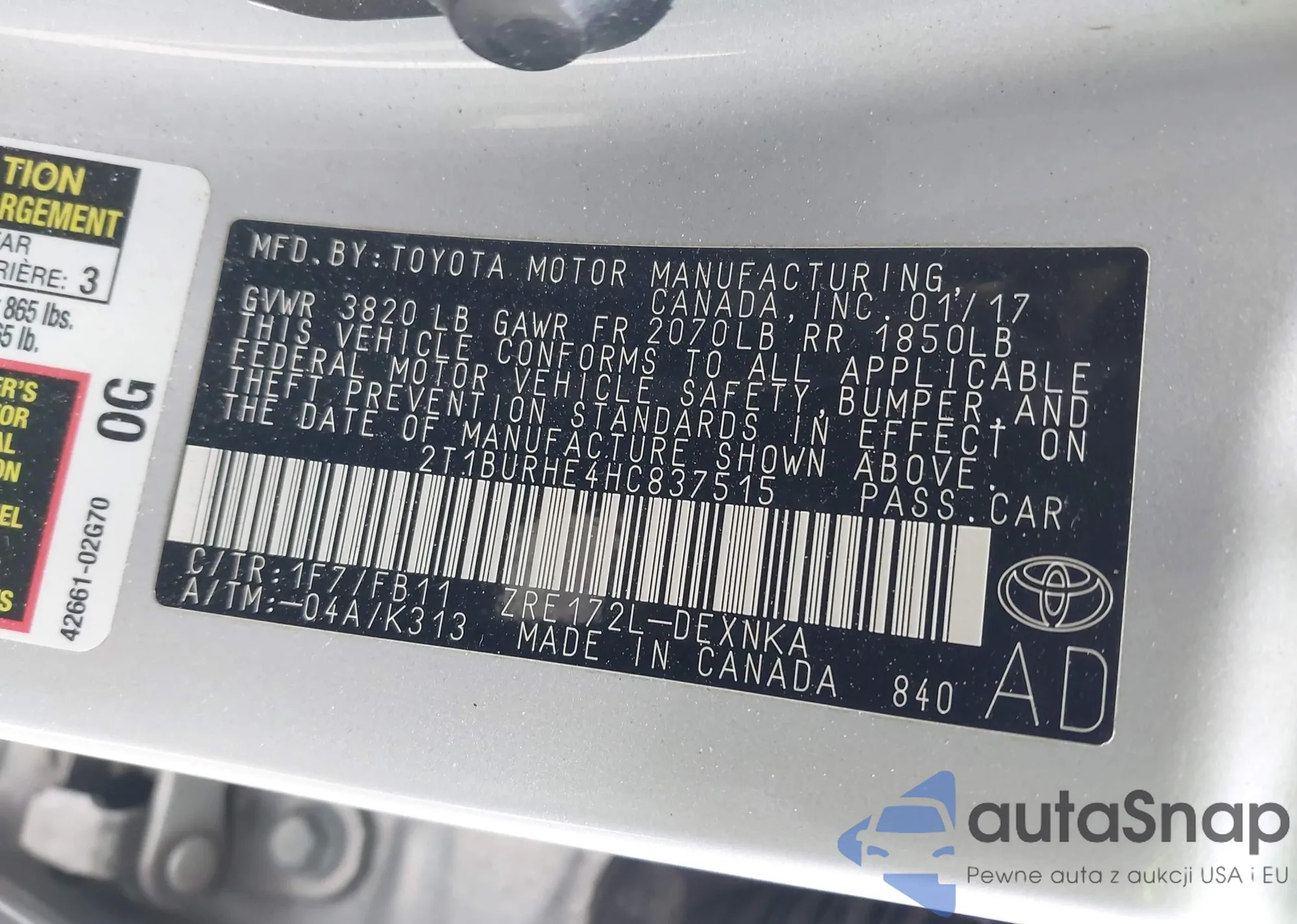 • VIN 2T1BURHE4HC837515