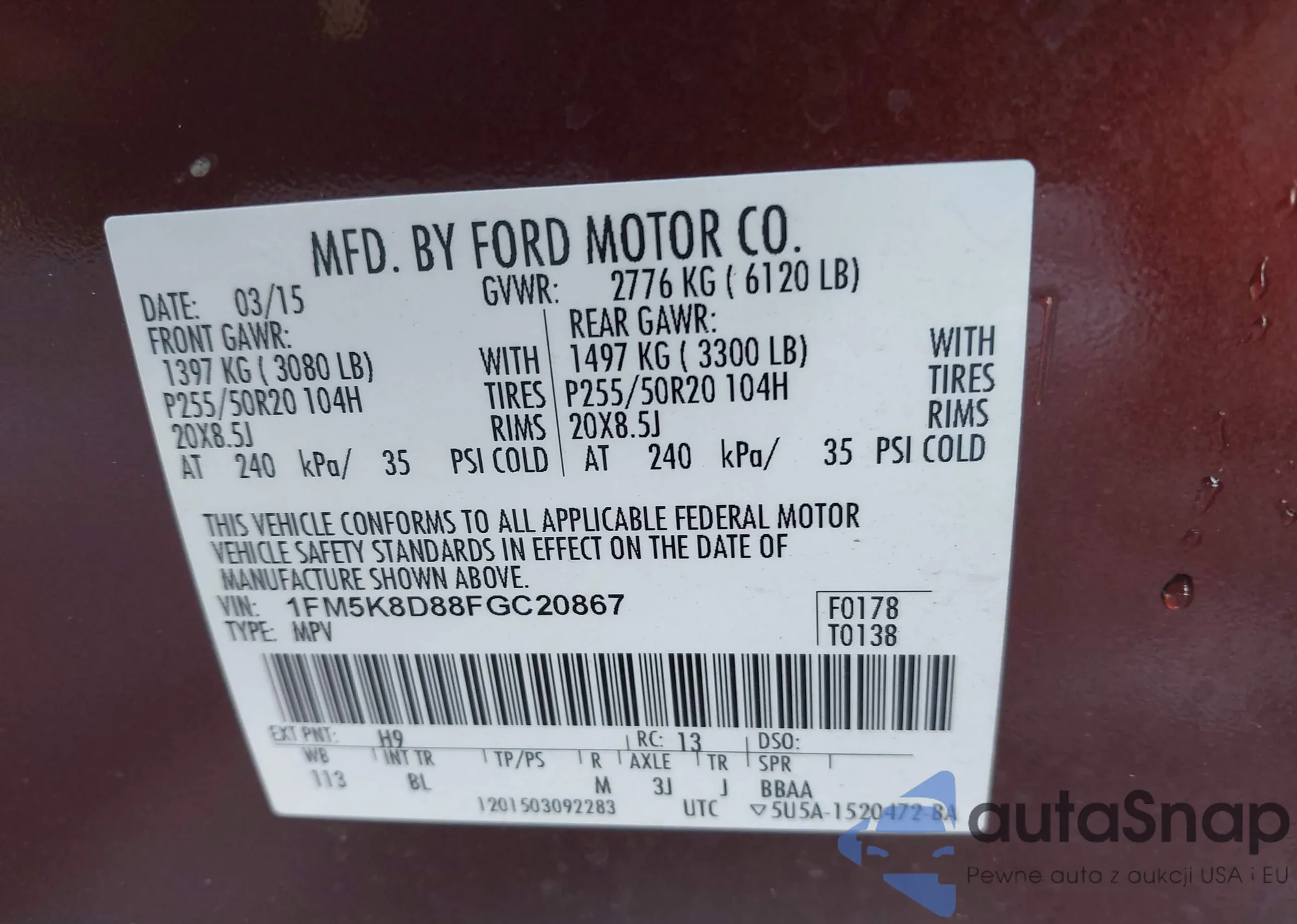 • VIN 1FM5K8D88FGC20867